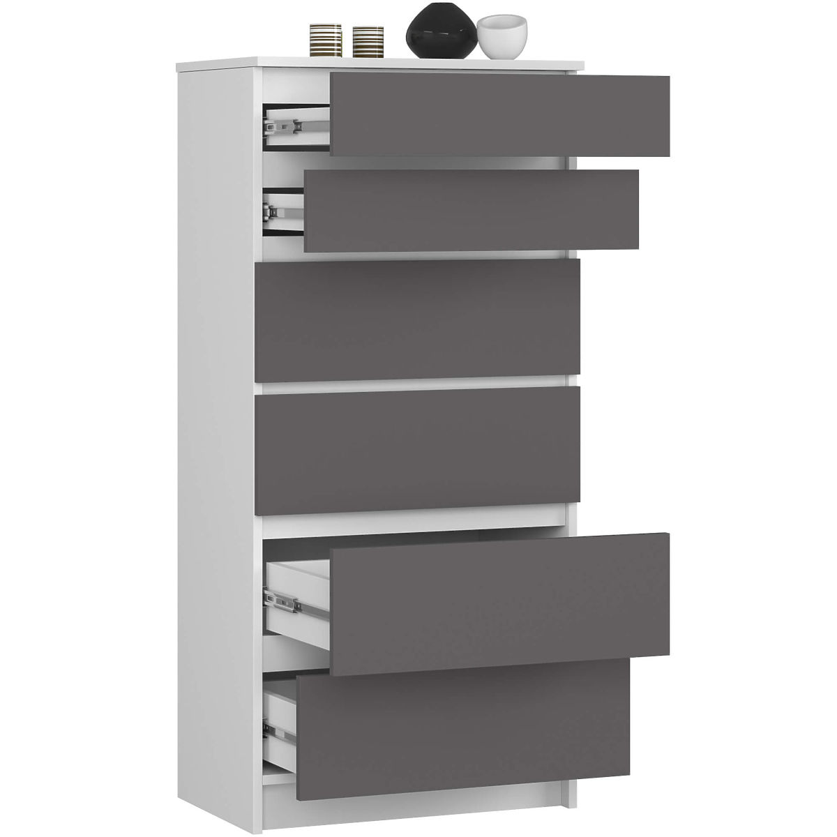 Chest of drawers with 6 drawers and a white and gray color scheme. .. more