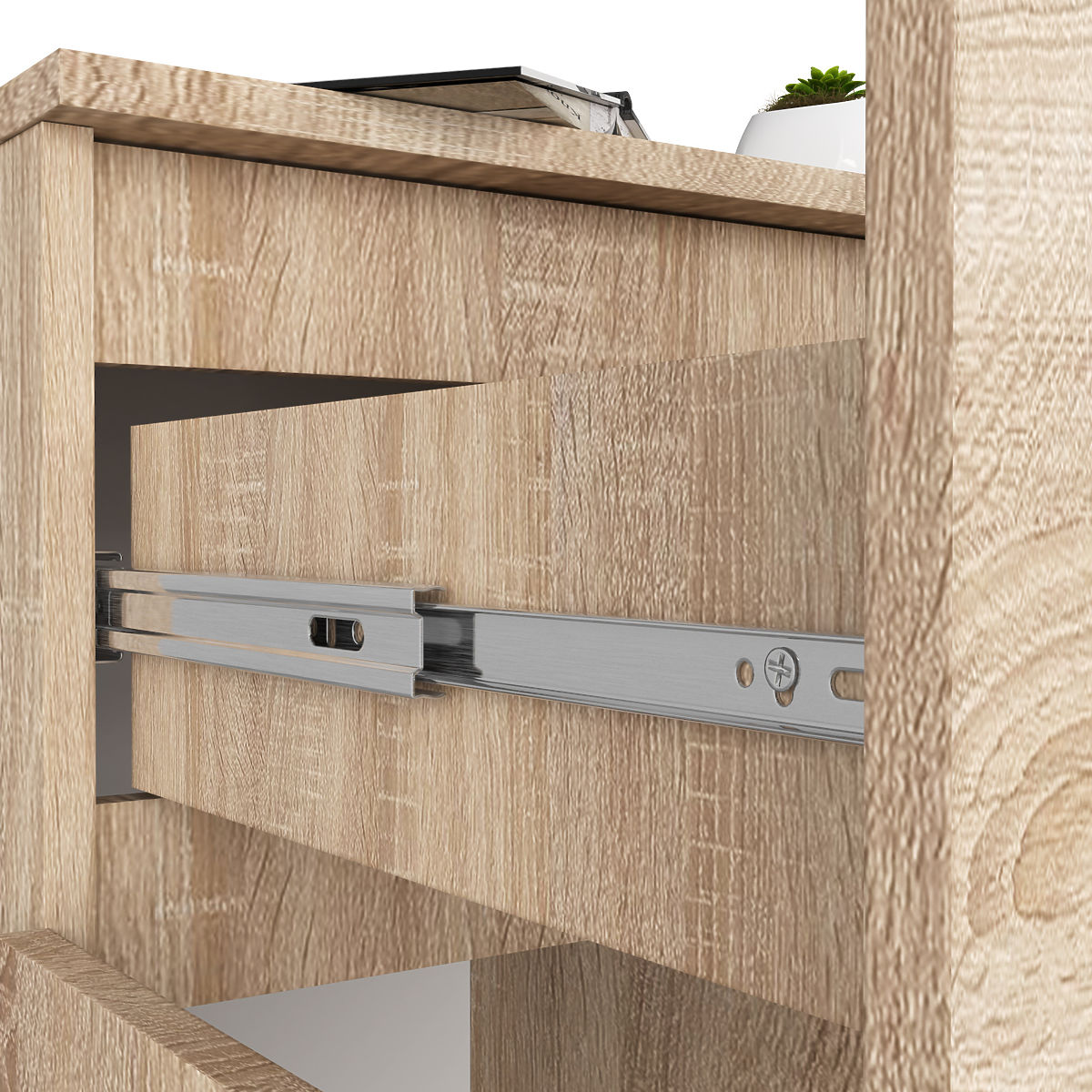 - Drawer slides on metal ball bearings