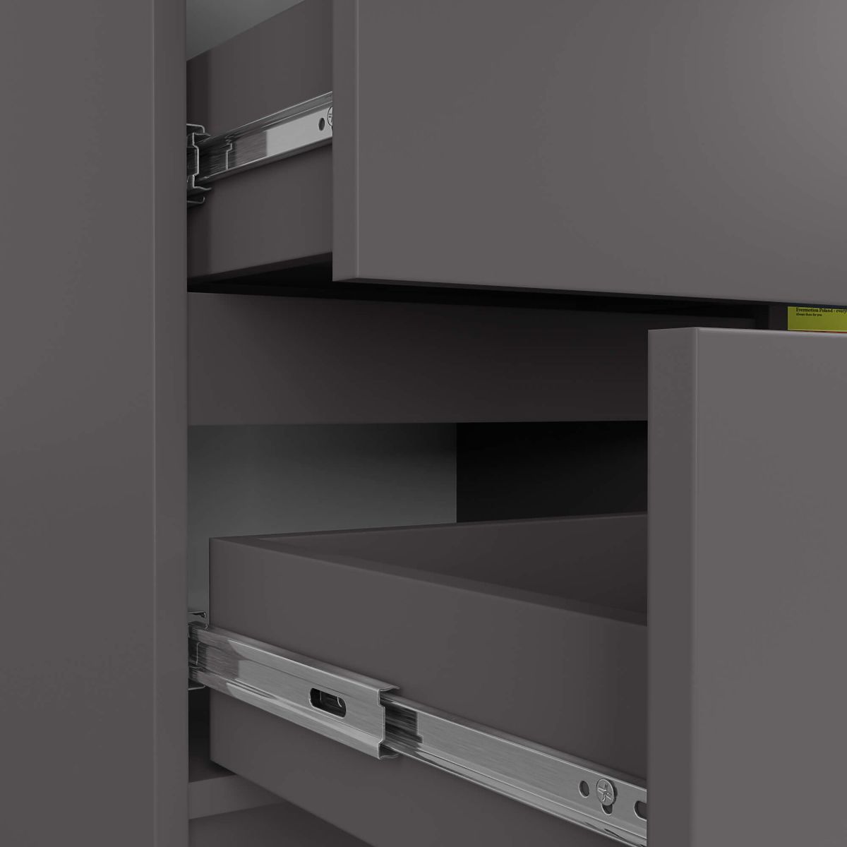 This small chest of drawers is a versatile piece of furniture suitable for any room. Its modern colors, sturdy construction, and meticulous craftsmanship make it ideal for use in hallways, living rooms, youth rooms, and bedrooms. It can also be used in office spaces for storing numerous documents and office supplies. The chest consists of one door (with two shelves inside) and 3 drawers. The furniture combines the color graphite gray.