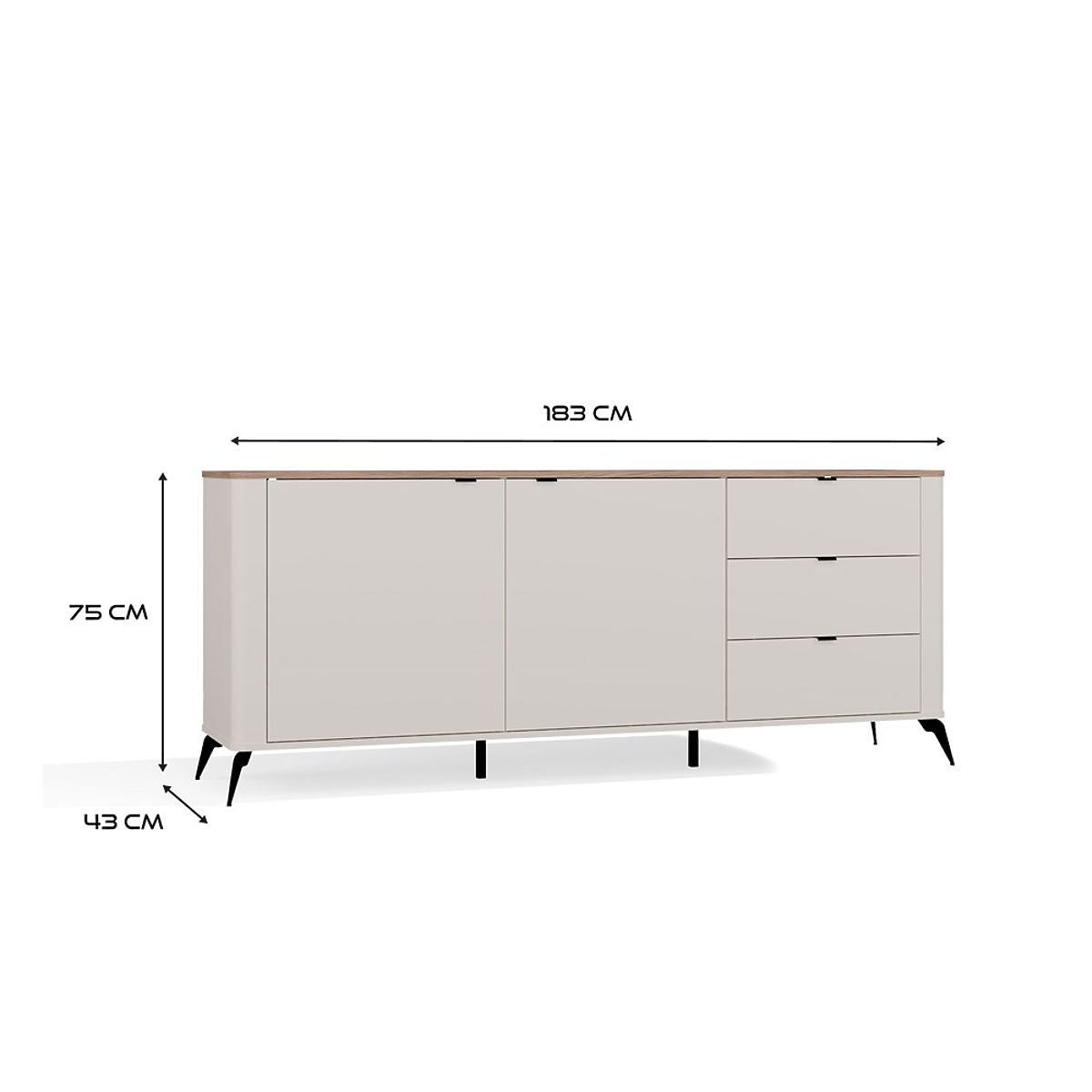 Banaby.ie   »   Children's furniture   /   Children's chests of drawers and wardrobes   /   Children's chests of drawers   /   CORDOBA 2D3S Sideboard Cashmere Beige Castello Oak Cabinet 3 Drawers Soft Closing