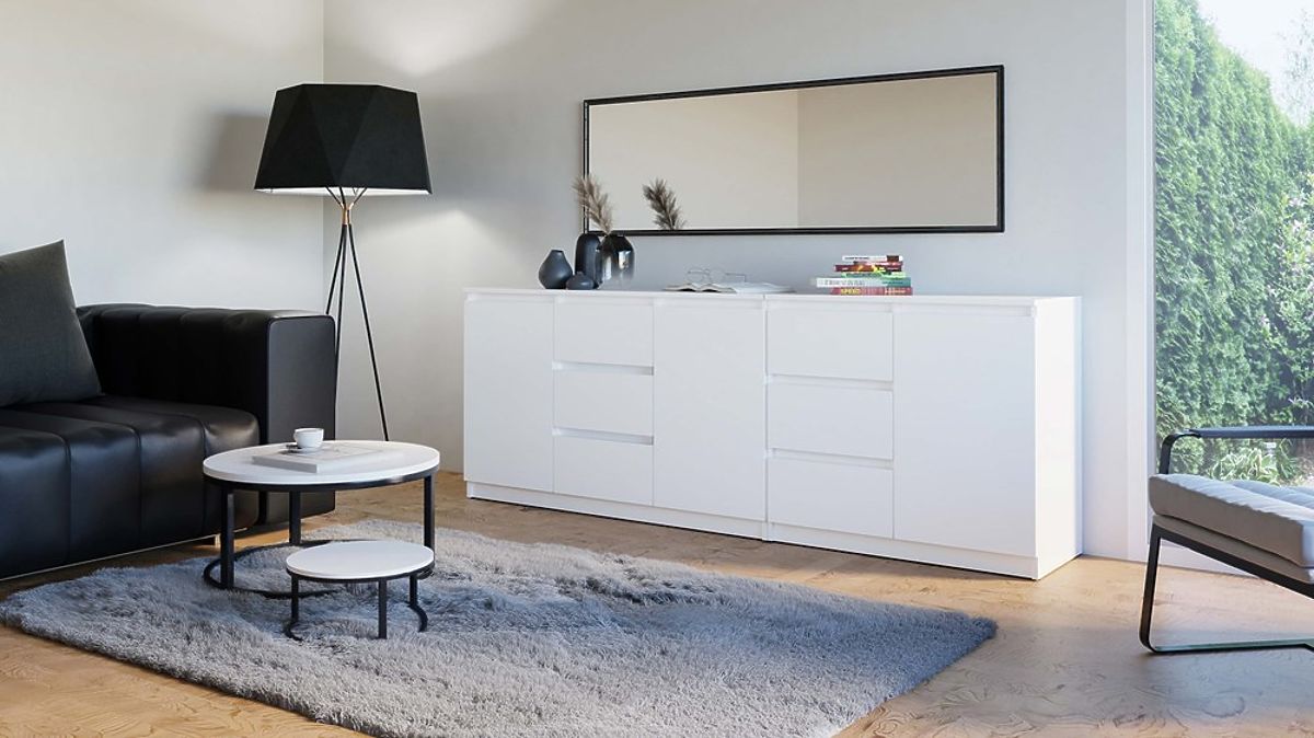 The modern COSTA dresser consists of two separate dressers, 1D3S with a width of 80 cm and 2D3S with a width of 120 cm, combined into a functional set. Costa is a practical and spacious piece of furniture that will furnish your bedroom, living room, or children's room.