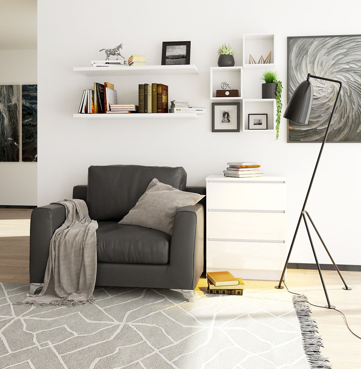 DRESSER K60 3 DRAWERS WHITE ACRYLIC GLOSS Made from 16mm abrasion-resistant laminated board.