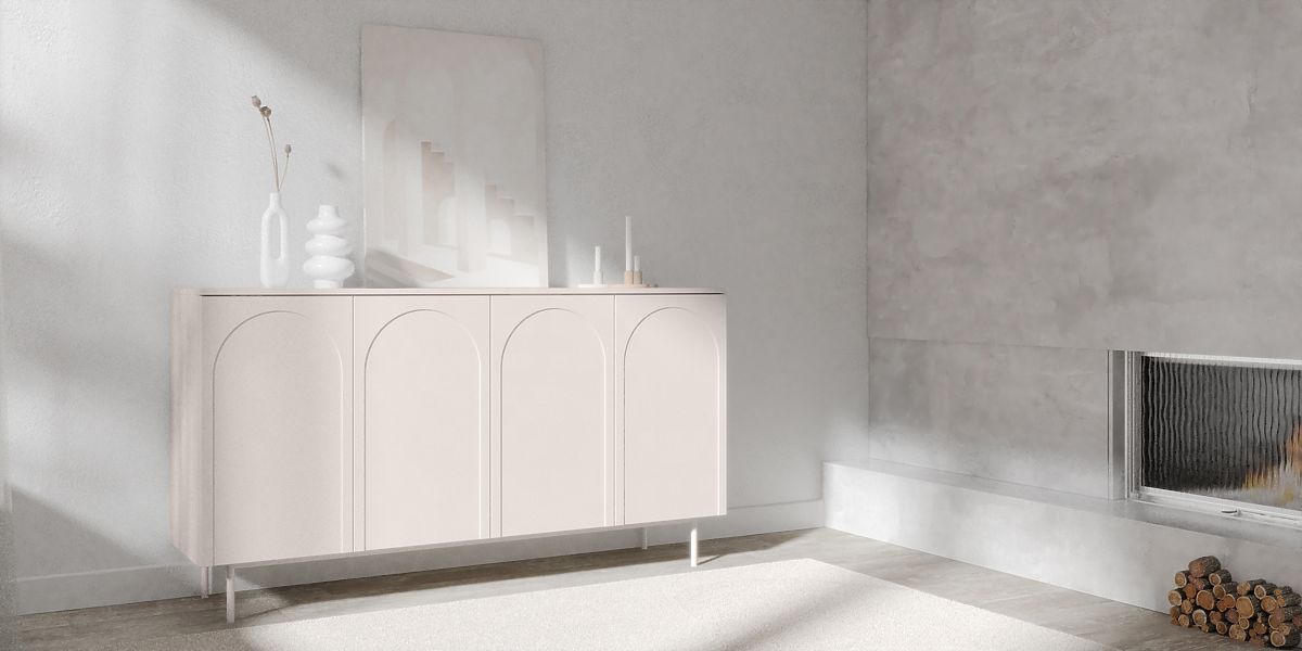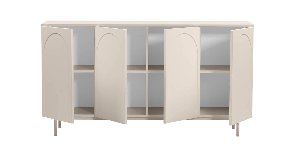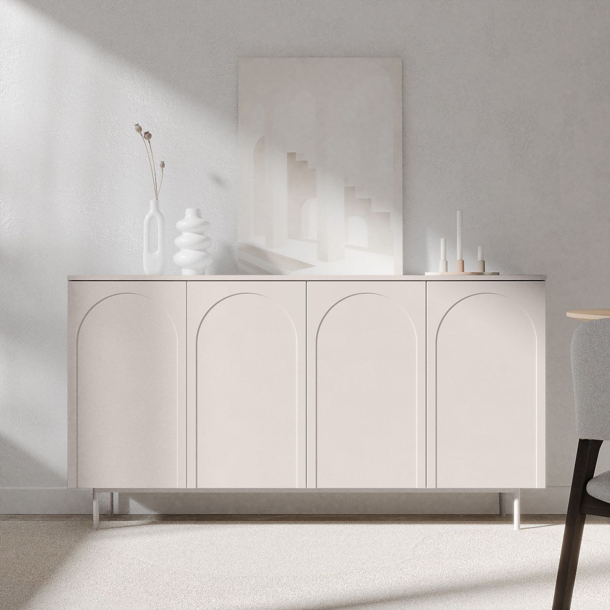 Four-door sideboard with decorative arch-shaped fronts and push-to-open system. .. more