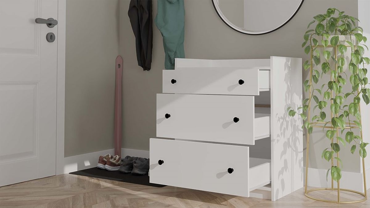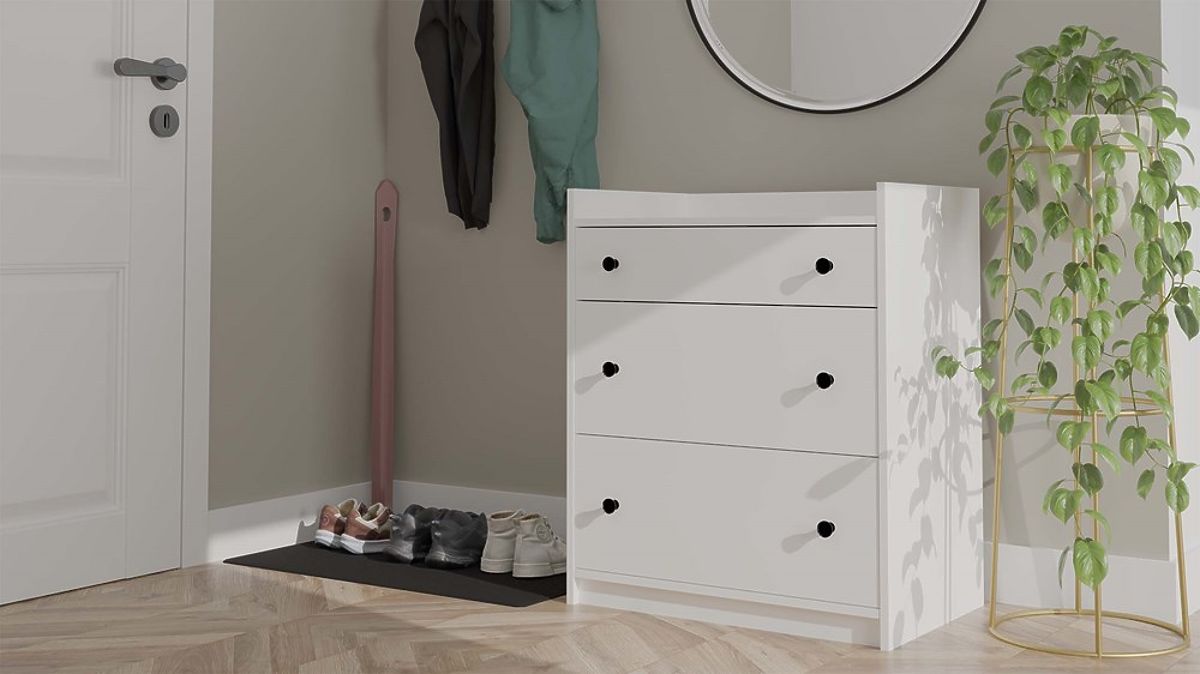 With 3 spacious drawers featuring comfortable handles, it offers ample space to store clothes, accessories, textiles, or children's essentials.