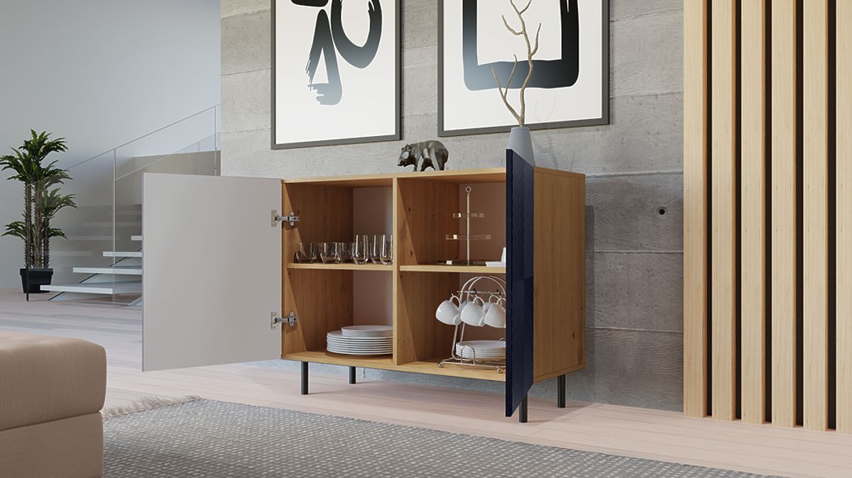 The interior of the sideboard consists of shelves that help organize items. You'll find what you're looking for more easily.