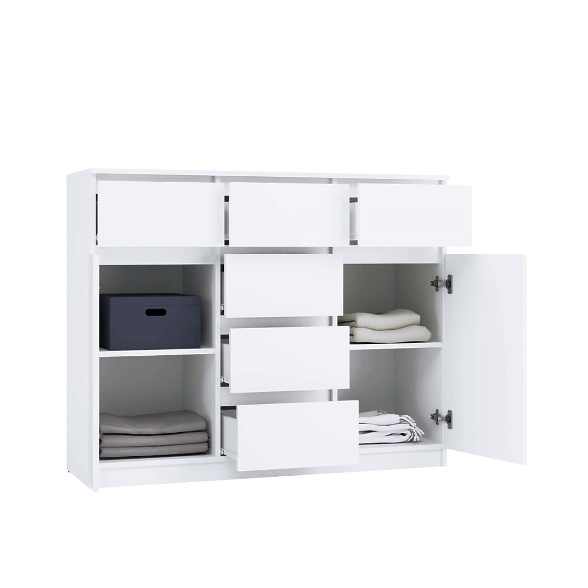 Modern white dresser with 2 doors and 6 drawers. .. more