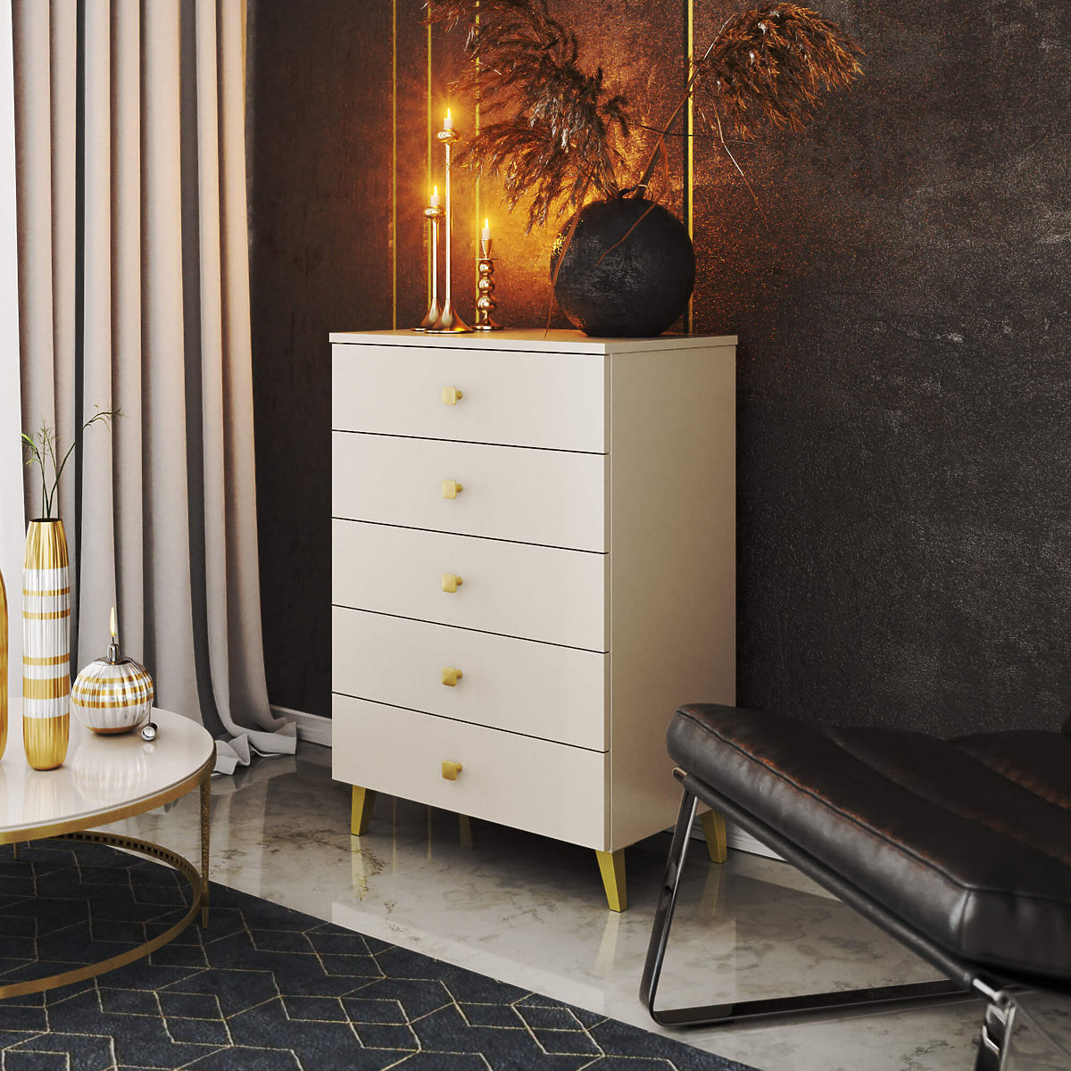MOBI 5-DRAWER CHEST CASHMERE GOLD