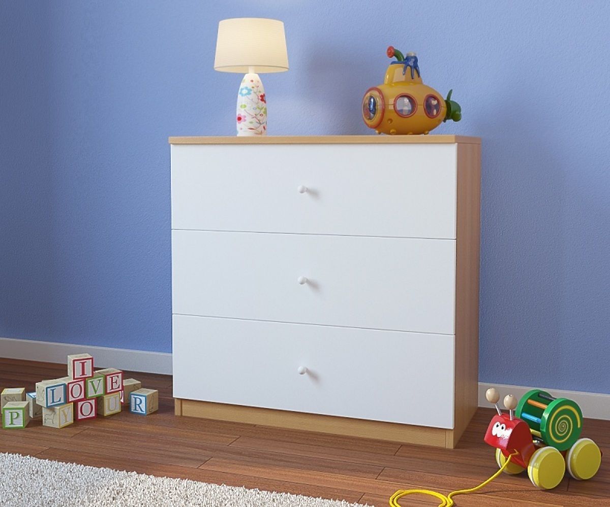Chest is made of high quality laminate boards, along with beds Ourbaby it creates a unique design. You can find it in a beautiful beech and white. External dimensions: 80 x 80 x 40 cm