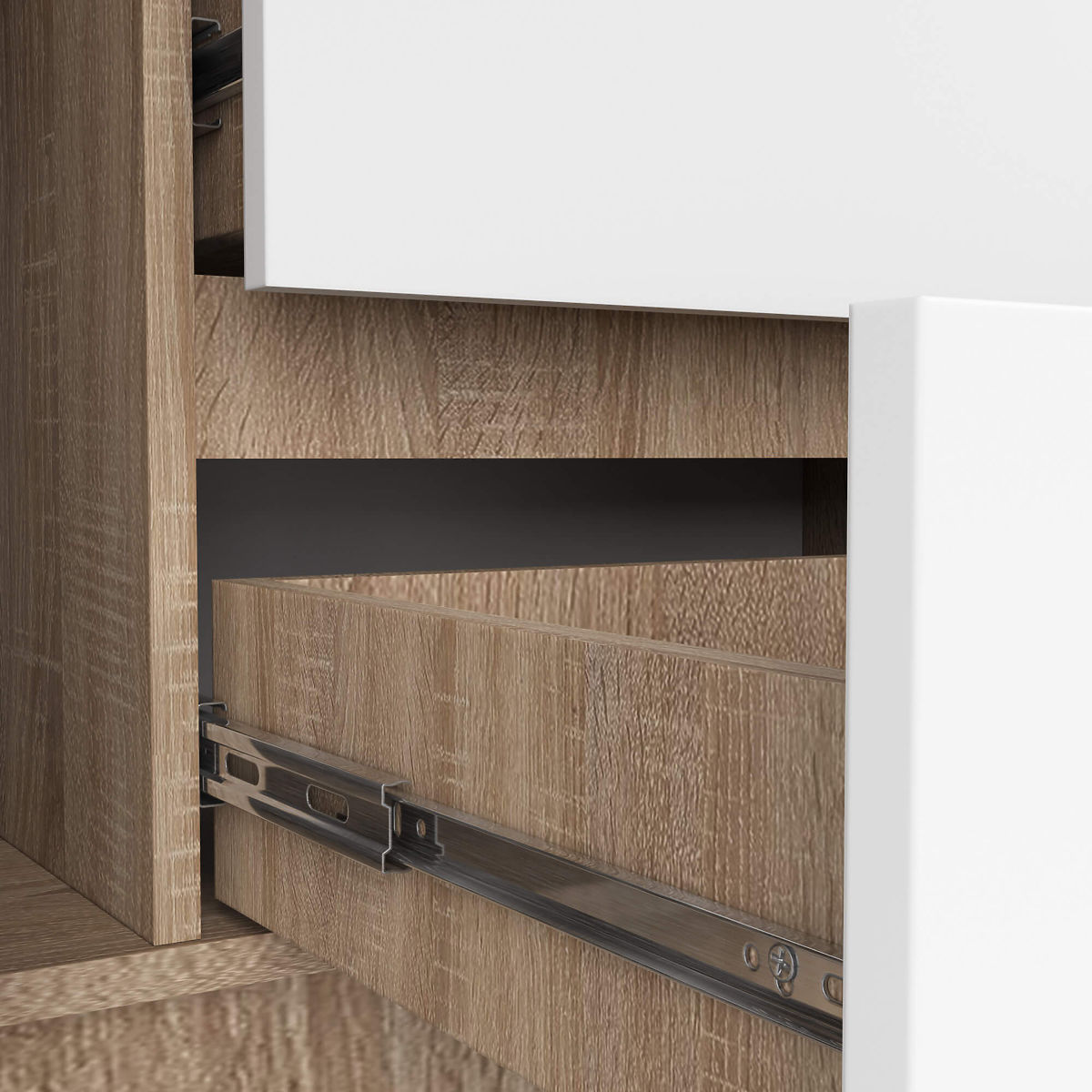 - Drawers move on metal ball-bearing slides - Edges covered with ABS edge ensuring high protection against damage