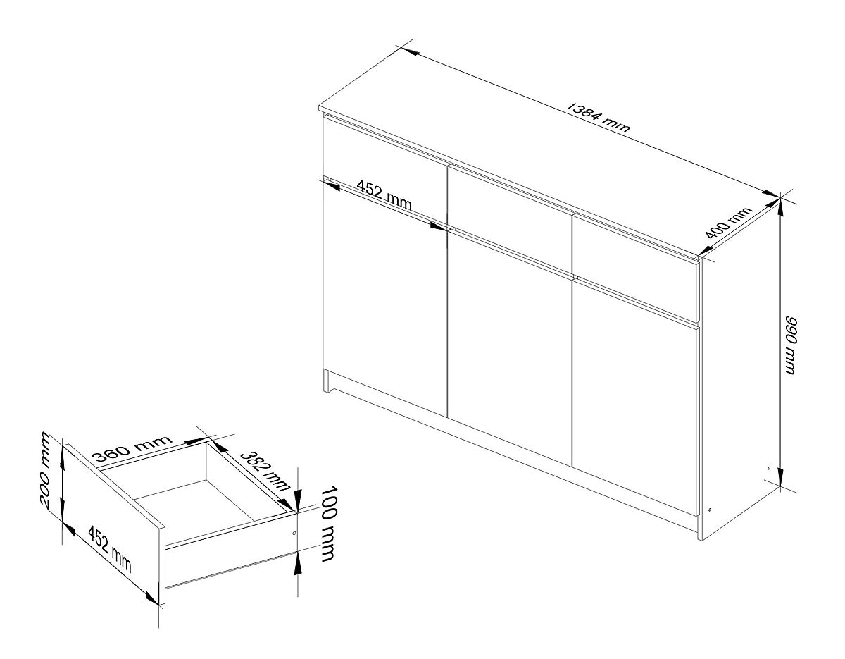 Banaby.ie   »   Children's furniture   /   Children's chests of drawers and wardrobes   /   Children's chests of drawers   /   SIDEBOARD K140 3D 3SZ CLP PK WHITE / SONOMA