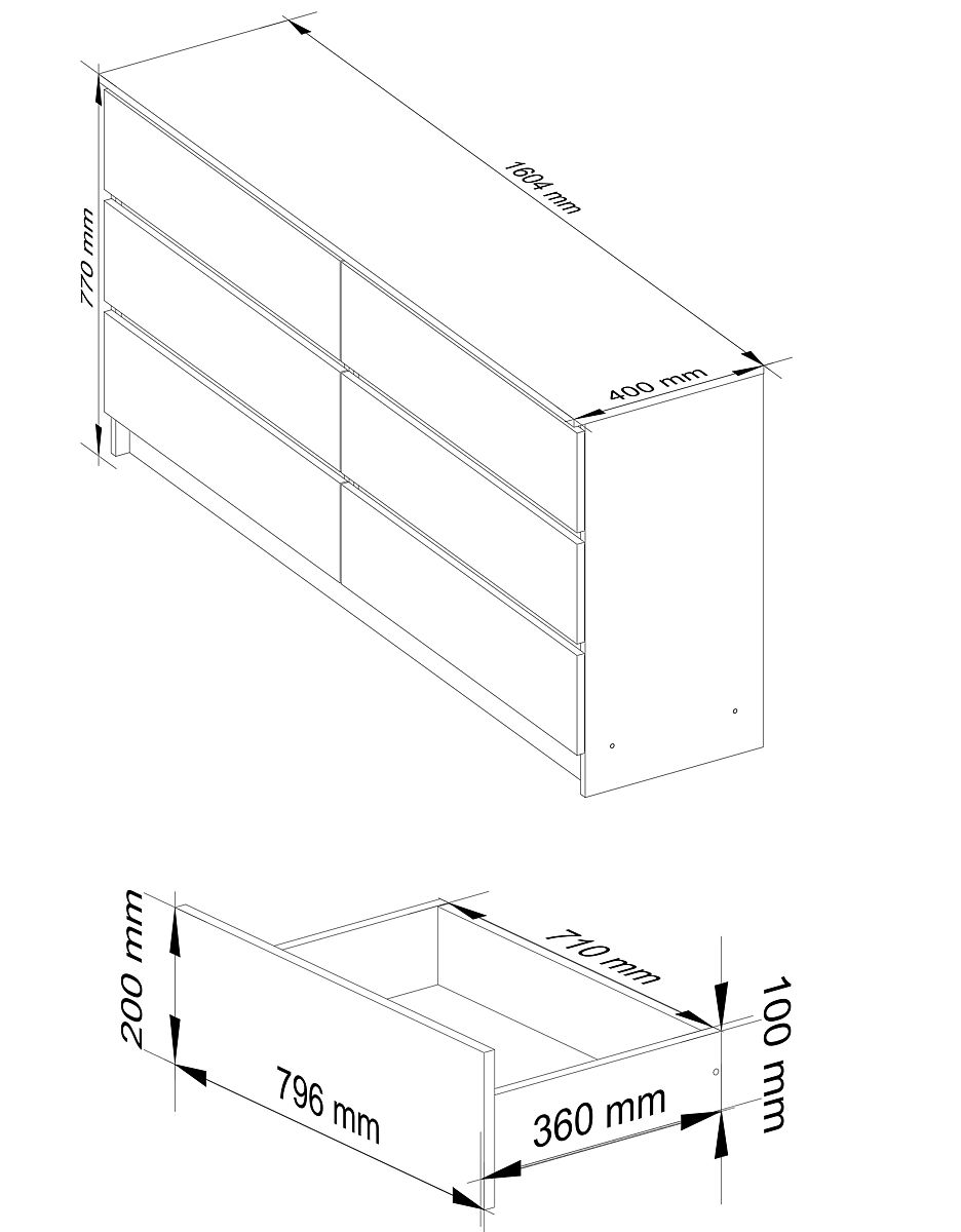 The sideboard is one of the most practical and popular pieces of furniture for living rooms and offices. It's no wonder - it provides space for storing a variety of items. The modern sideboard K 160 cm in artisan oak/graphite gray color is an interesting choice for those who prefer simplicity and elegance in the best execution. The furniture was thoughtfully designed and manufactured with great care. Attention is drawn to the quality materials that ensure durability and resistance to potential damage. The sideboard is equipped with six spacious drawers. The top, measuring up to 160 centimeters, can be used to display various decorative elements, books, flowers, photo frames. It can also be used under a TV - everything depends on individual needs.