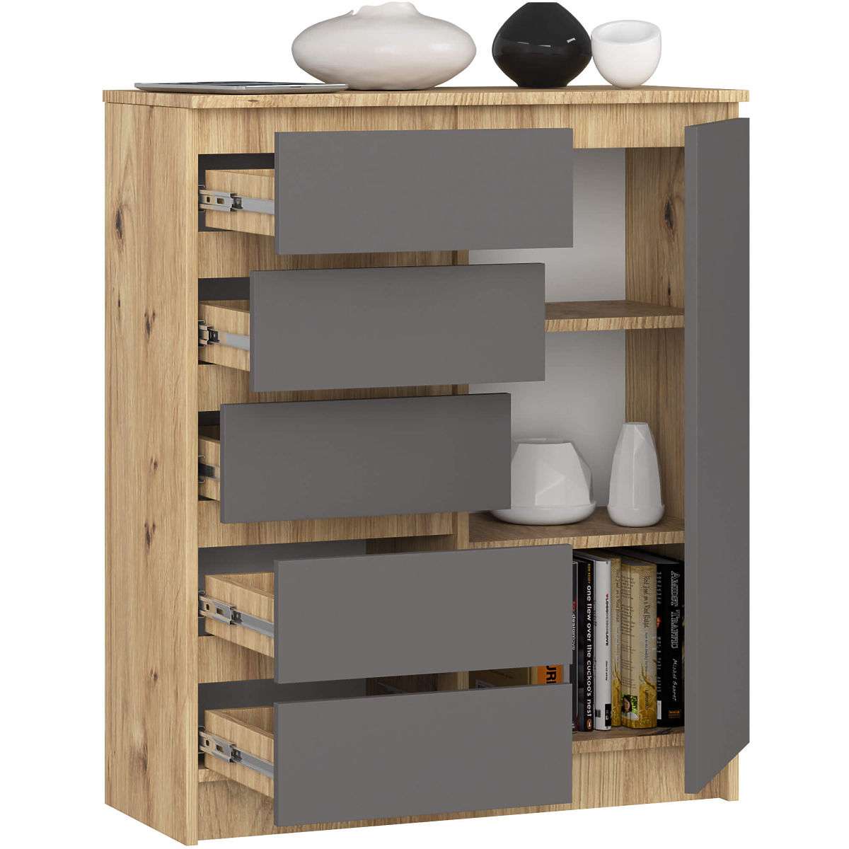 SIDEBOARD 80 cm 5 DRAWERS 1 DOOR COLOR OAK ARTISAN GRAPHITE GRAY