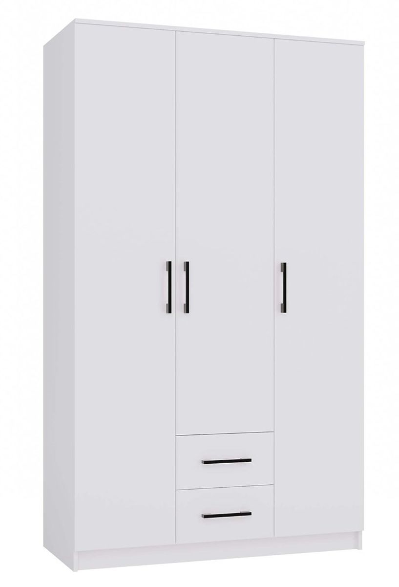 Modern white wardrobe with 3 doors and 2 drawers for versatile storage. .. more