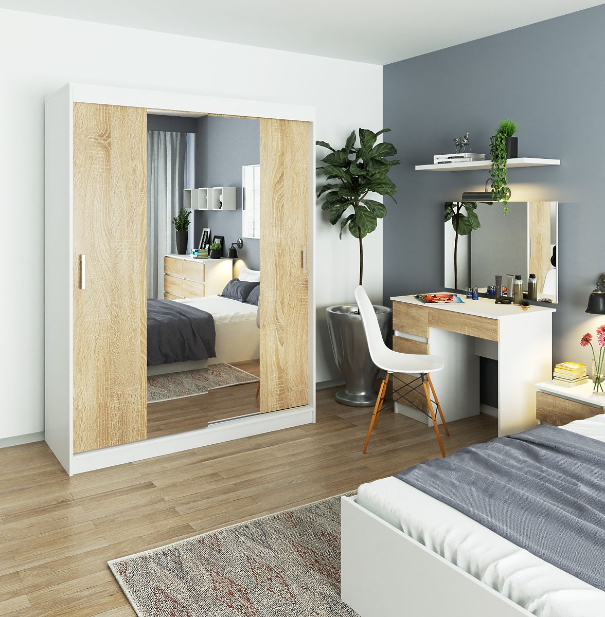 The 150 cm sliding wardrobe is one of the elements that form part of the CLP furniture system, allowing for the creation of a complete set that can be used to furnish more than one bedroom. Additionally, attention was paid to the aesthetic finish of the product by using ABS edging for edge banding.