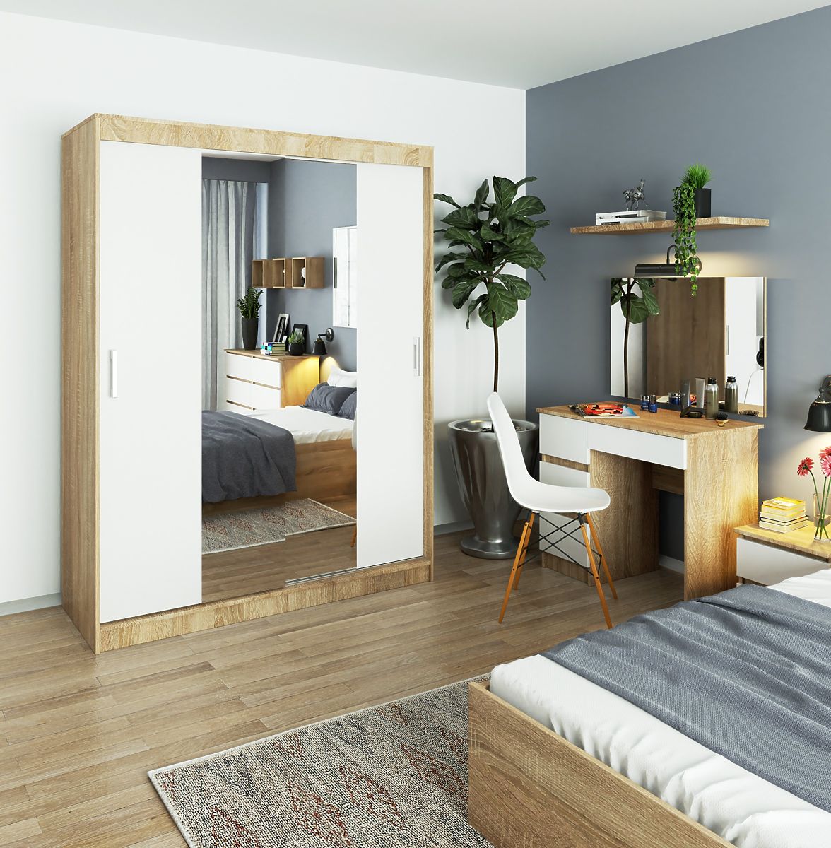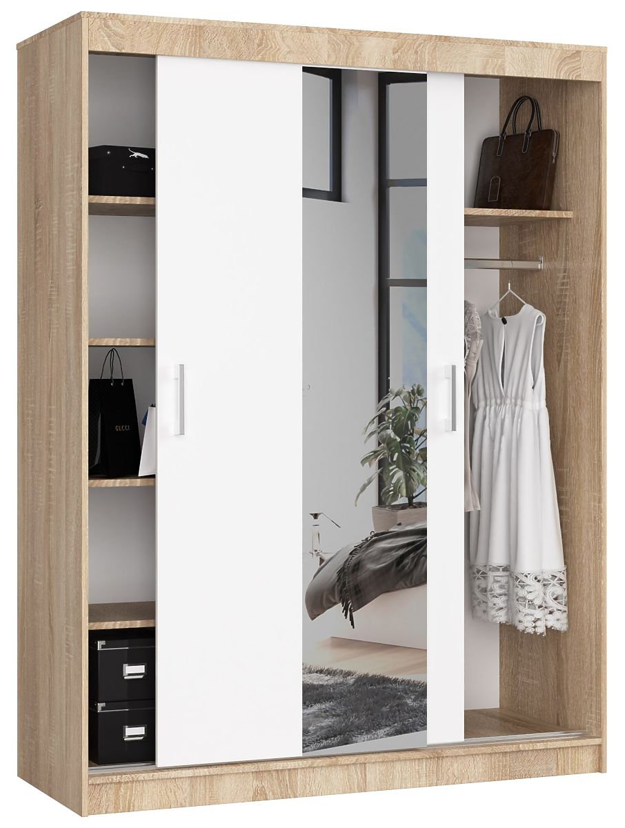 Wardrobes are highly functional furniture, essential for everyday life. It's no wonder many people carefully consider which model to purchase. An interesting option is the 150 cm CLP sliding wardrobe with a mirror in two colors: Sonoma and white. It looks very stylish and fits perfectly into modern interiors. At the same time, it is functional. It can be placed in the bedroom, dressing room, or living room.