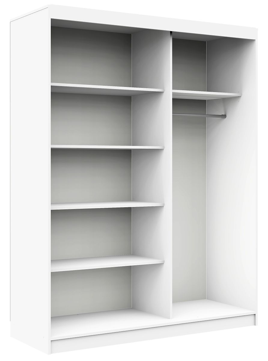 White sliding wardrobe 150 cm with shelves and a clothes rail. Large usable area.