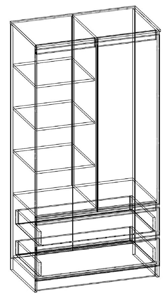 WARDROBE S 90cm 2 DOORS 2 DRAWERS