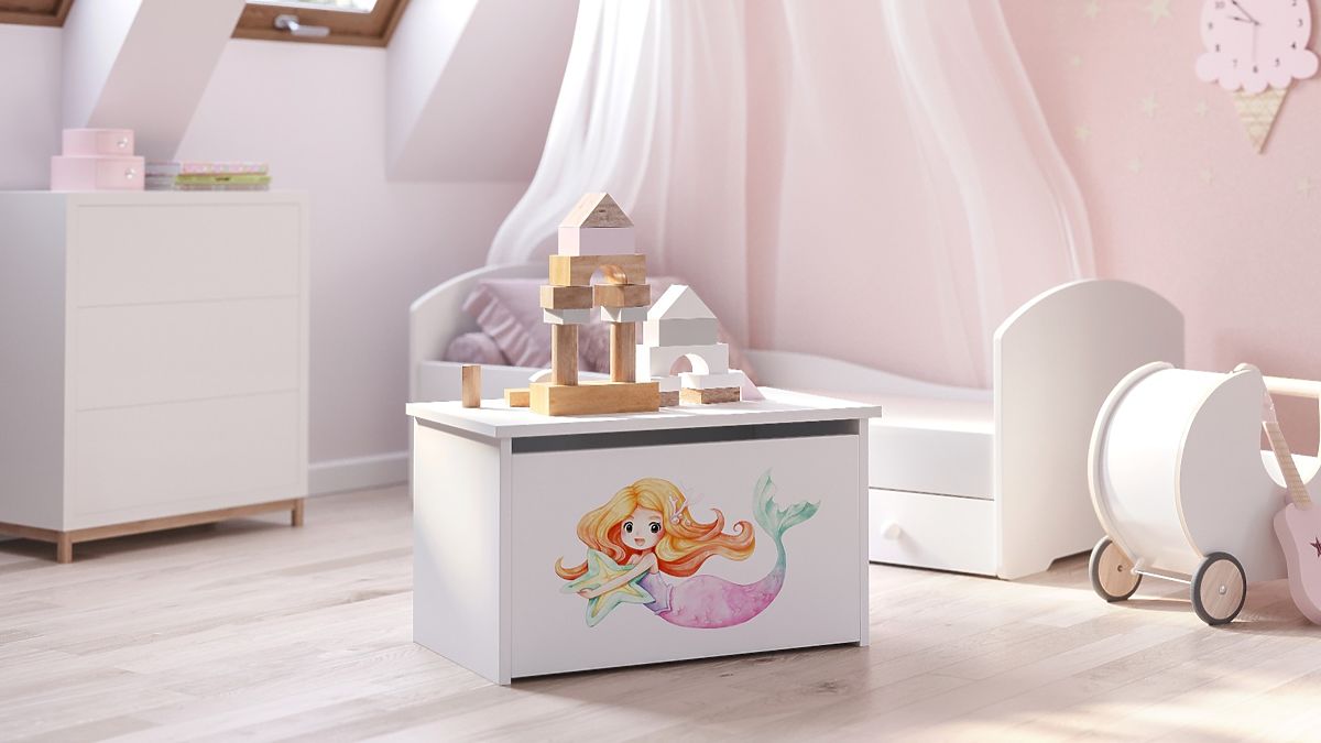 Banaby.ie » Children's furniture / Children's chests of drawers and wardrobes / Toy chests / Daria White Toy Chest with Mermaid Print