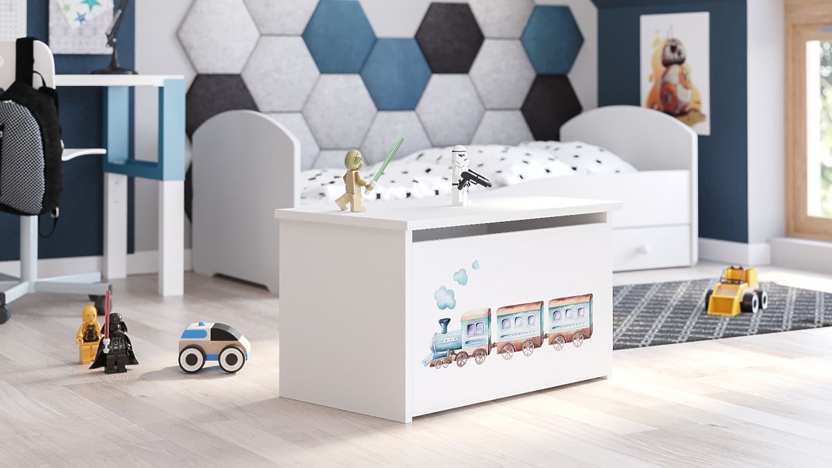 Banaby.ie » Children's furniture / Children's chests of drawers and wardrobes / Toy chests / Daria White Toy Chest with Train Print