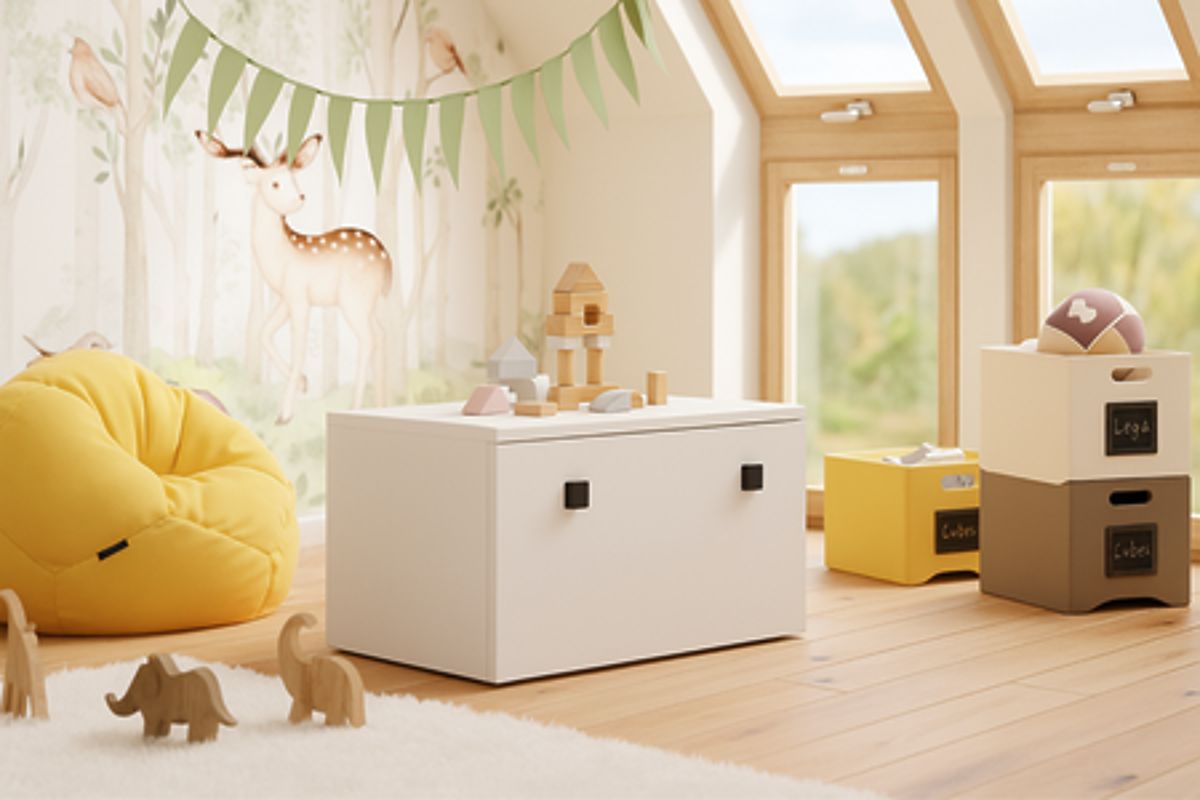 The INGA toy chest is an excellent way to organize space in a child's room, bedroom, or hallway. With its spacious interior, it allows for convenient storage of toys, blankets, clothes, and other small items, helping to maintain order in any interior. Its functional design ensures quick and easy access to stored items.