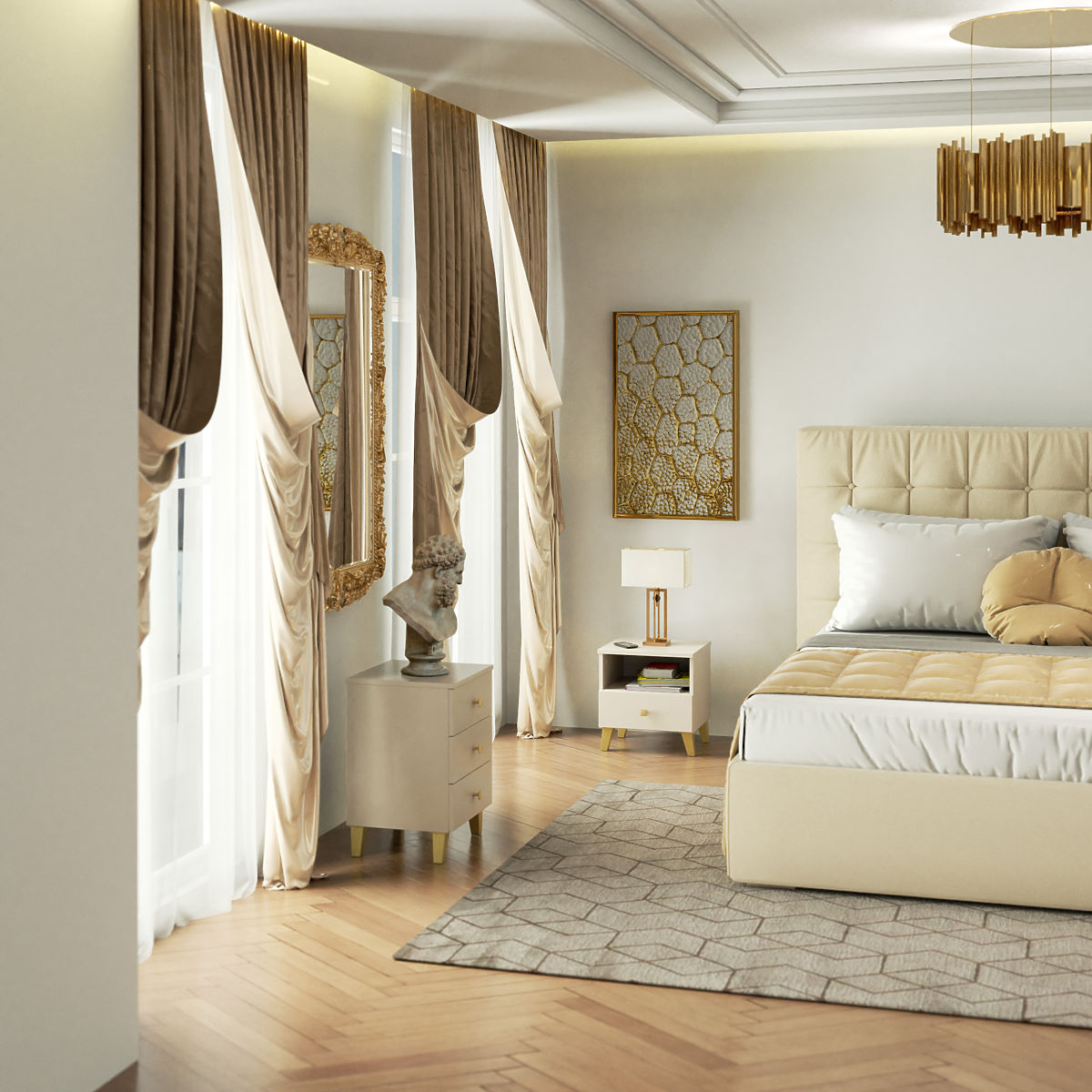 - Modern look - the furniture is simple in shape, with an interesting color combination of cashmere and gold,