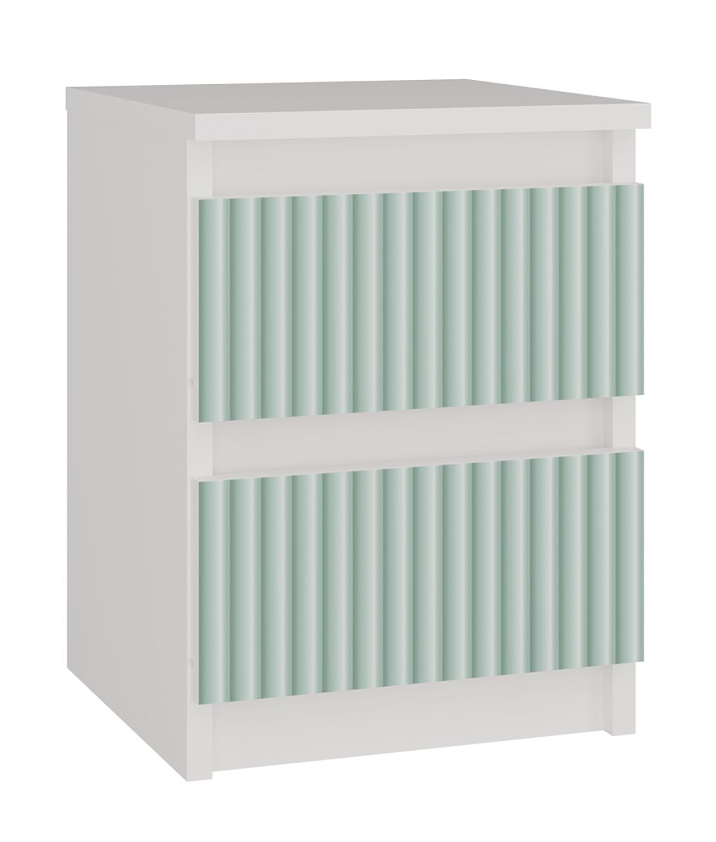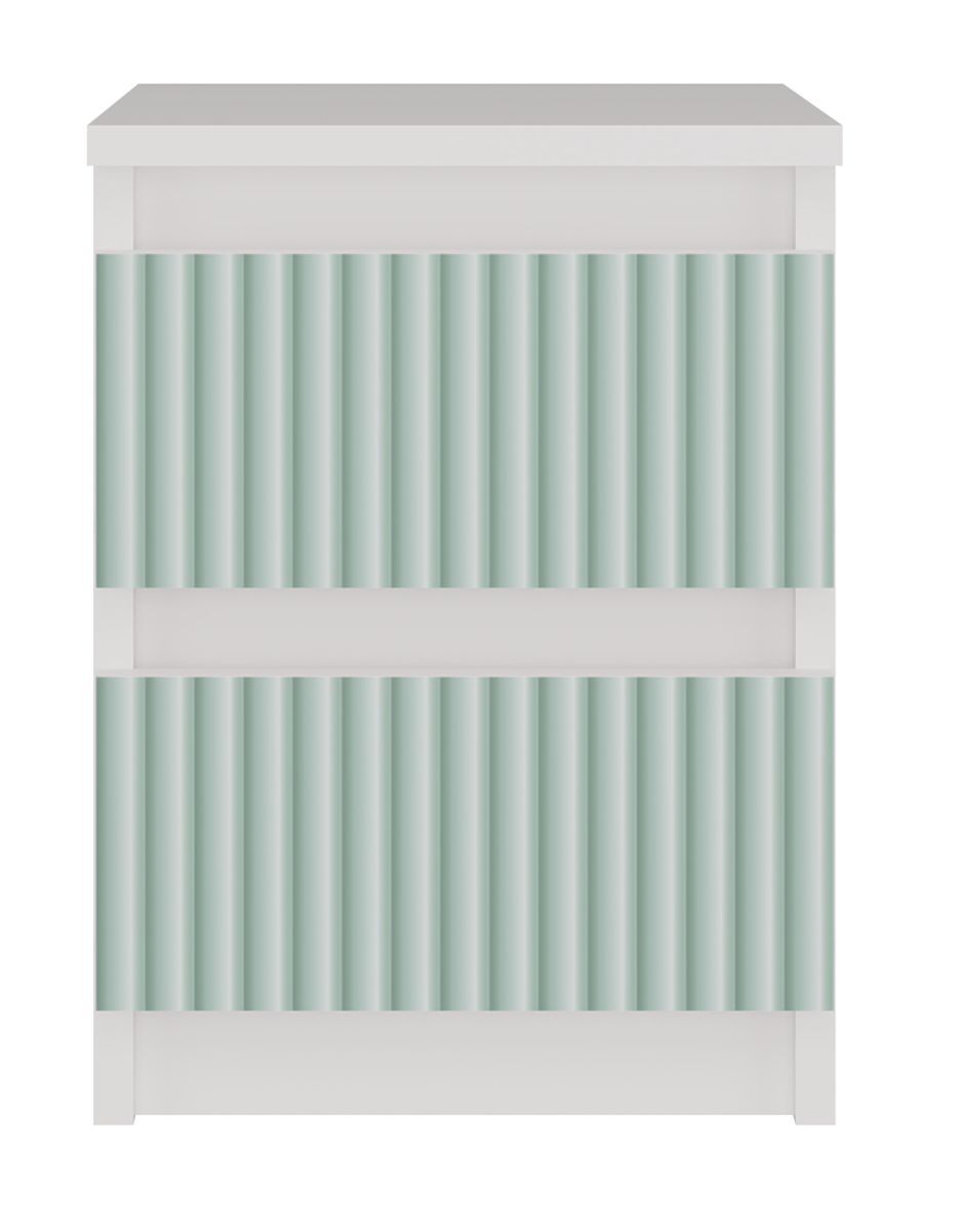 Modern mint nightstand with two drawers and vertical patterns. .. more
