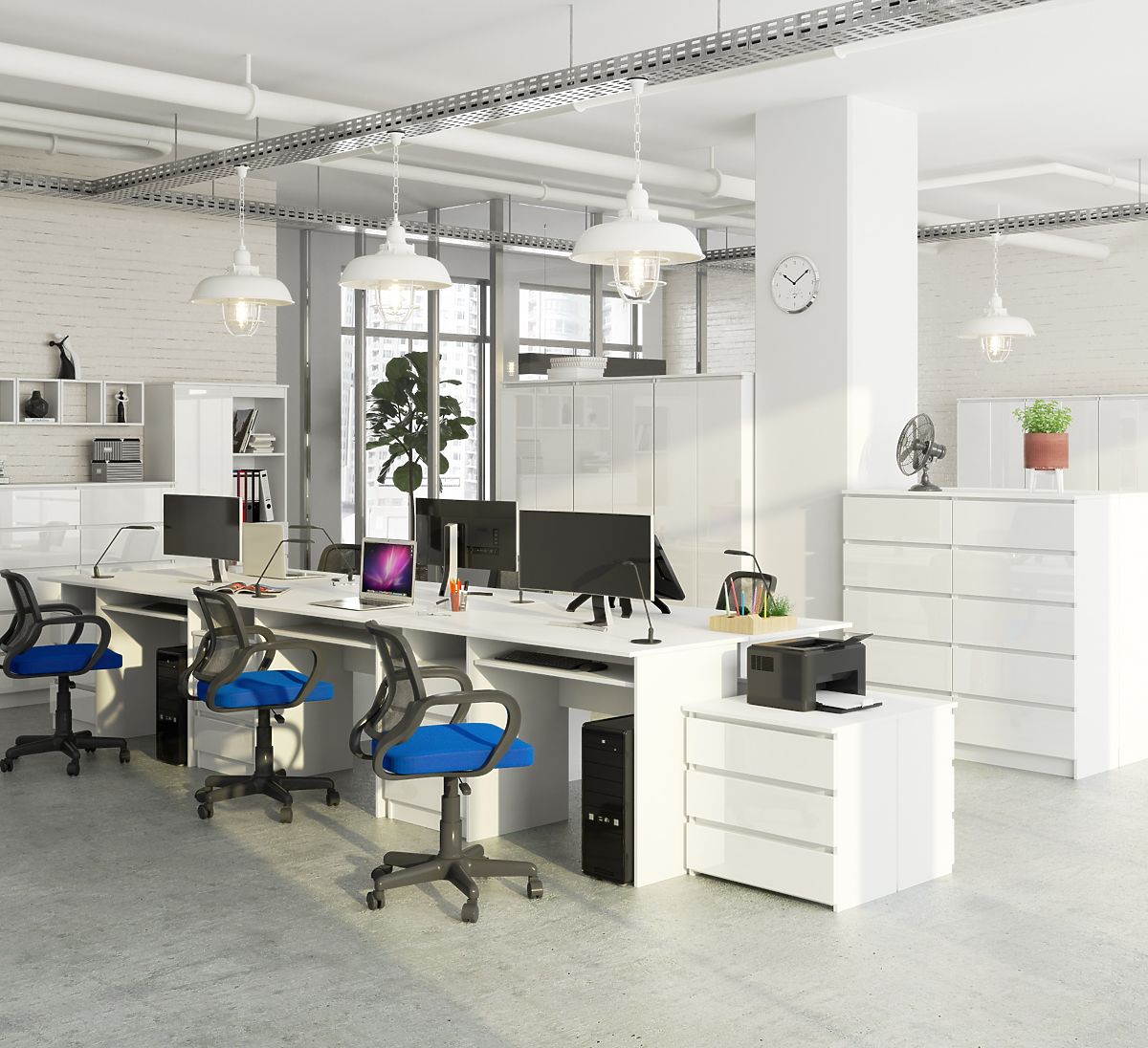 White desk with high gloss fronts and ample workspace. .. more