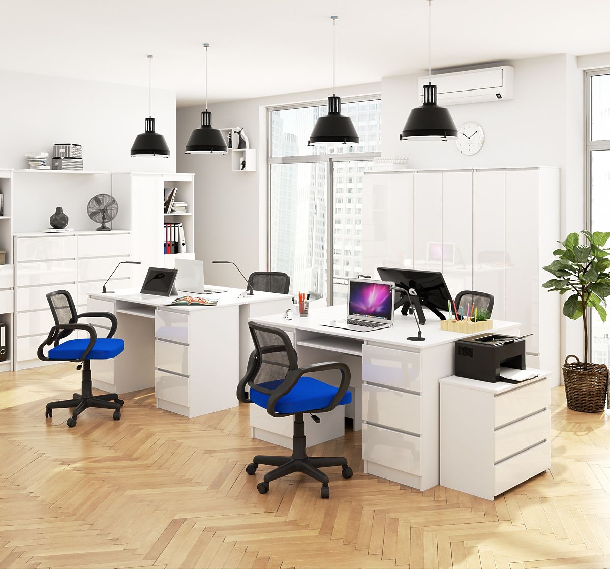 A simple yet elegant desk in white is a timeless and versatile choice that fits both office and living spaces. It is particularly suitable for a home office, children's or student's room, providing a comfortable and aesthetic place for work or study. The furniture is equipped with a practical pull-out keyboard shelf and six spacious drawers that accommodate all necessary office supplies.