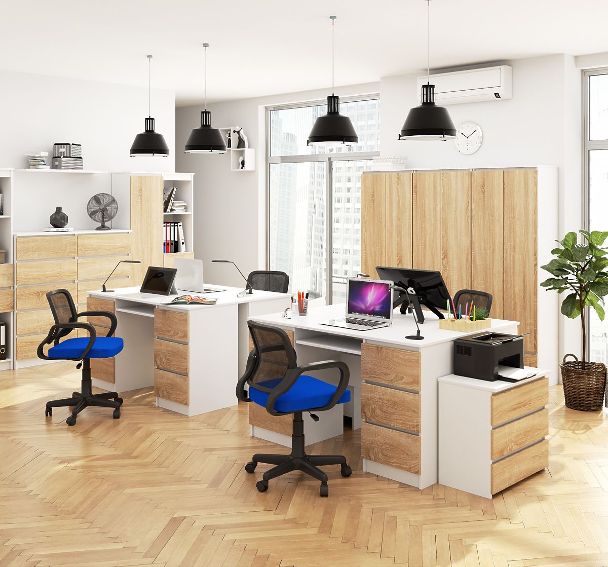 The A-11 135 cm computer desk in white with sonoma shade front panels is a functional, practical, and ergonomic piece of furniture equipped with 6 very practical, useful, and spacious drawers. This allows for better space organization through orderly storage of items that can be useful for our children during study or homework. It is important to remember that in fulfilling school duties, our children increasingly benefit from technology in the form of computers and the internet.