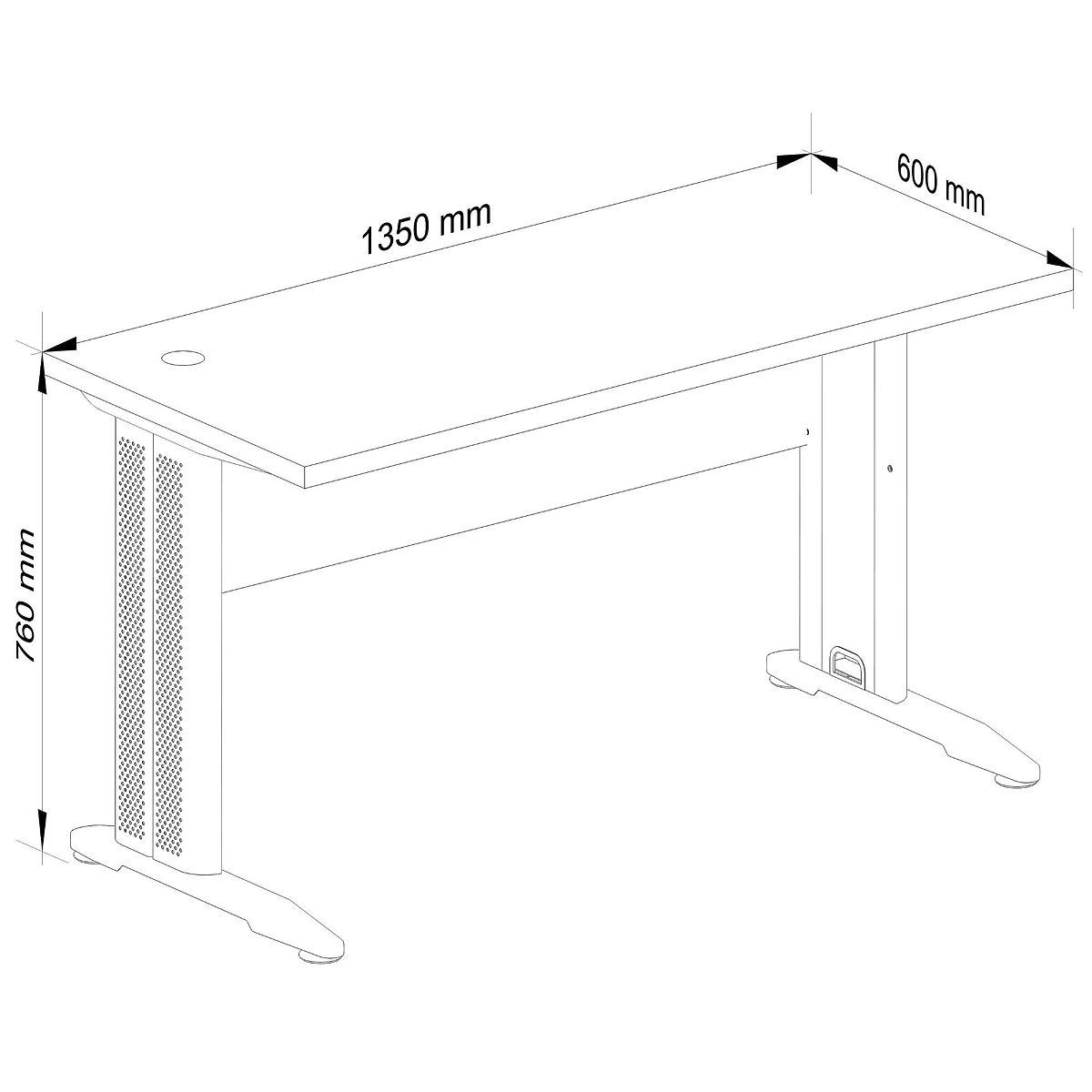 Desk made of 32 mm thick laminated board resistant to abrasion.