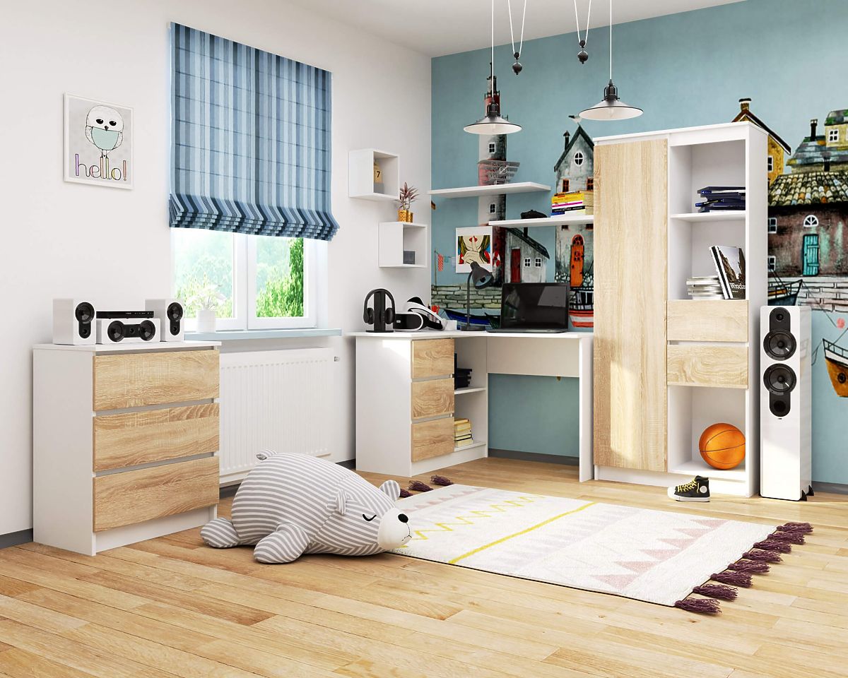 Banaby.ie » Children's furniture / Children's desks / Children's desks / CORNER DESK B16 124 cm LEFT 3 DRAWERS WHITE / SONOMA OAK