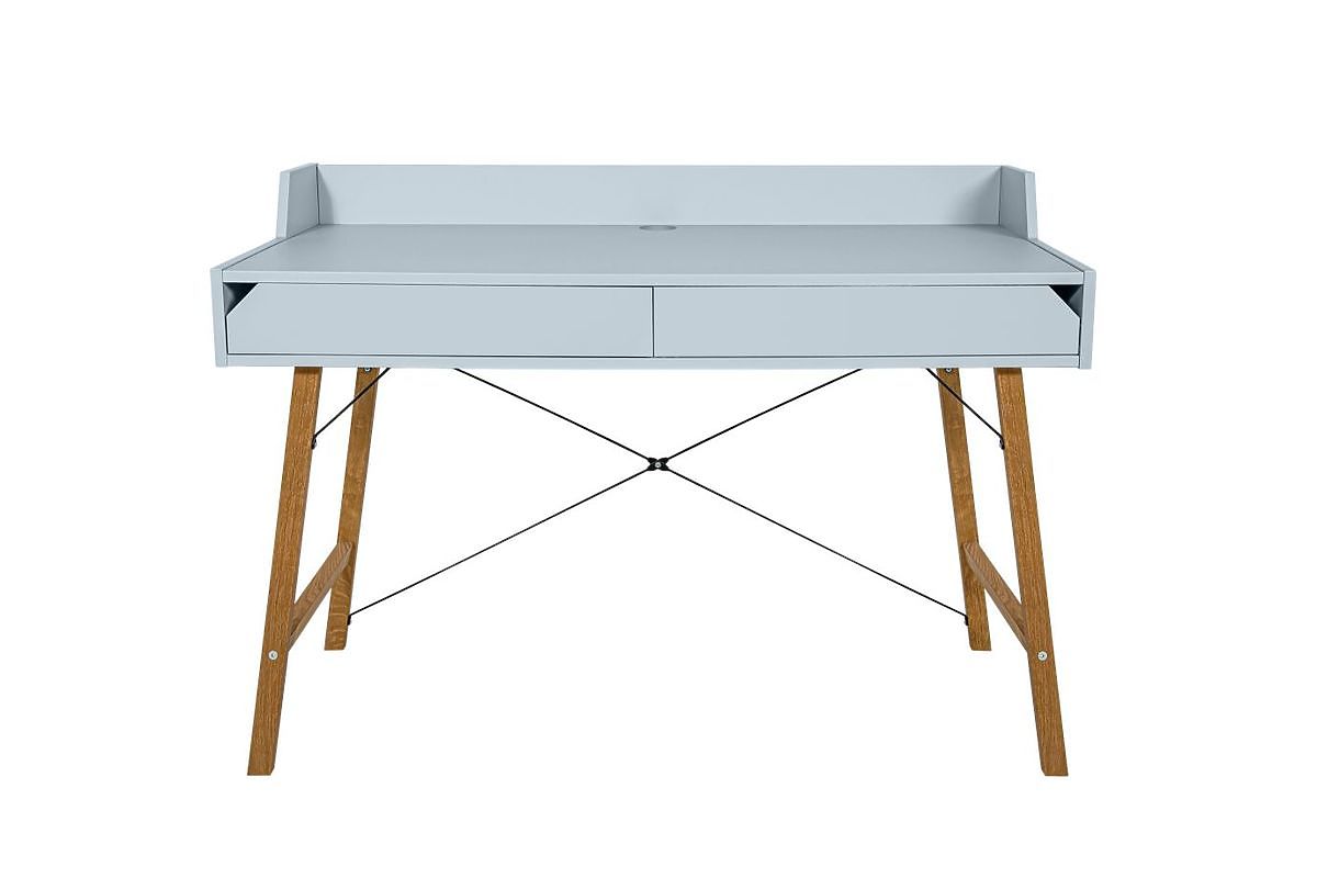 A desk with an emphasis on detail and minimalist design. It has two spacious drawers, a work surface border and a cable hole to keep your work surface tidy and organized.