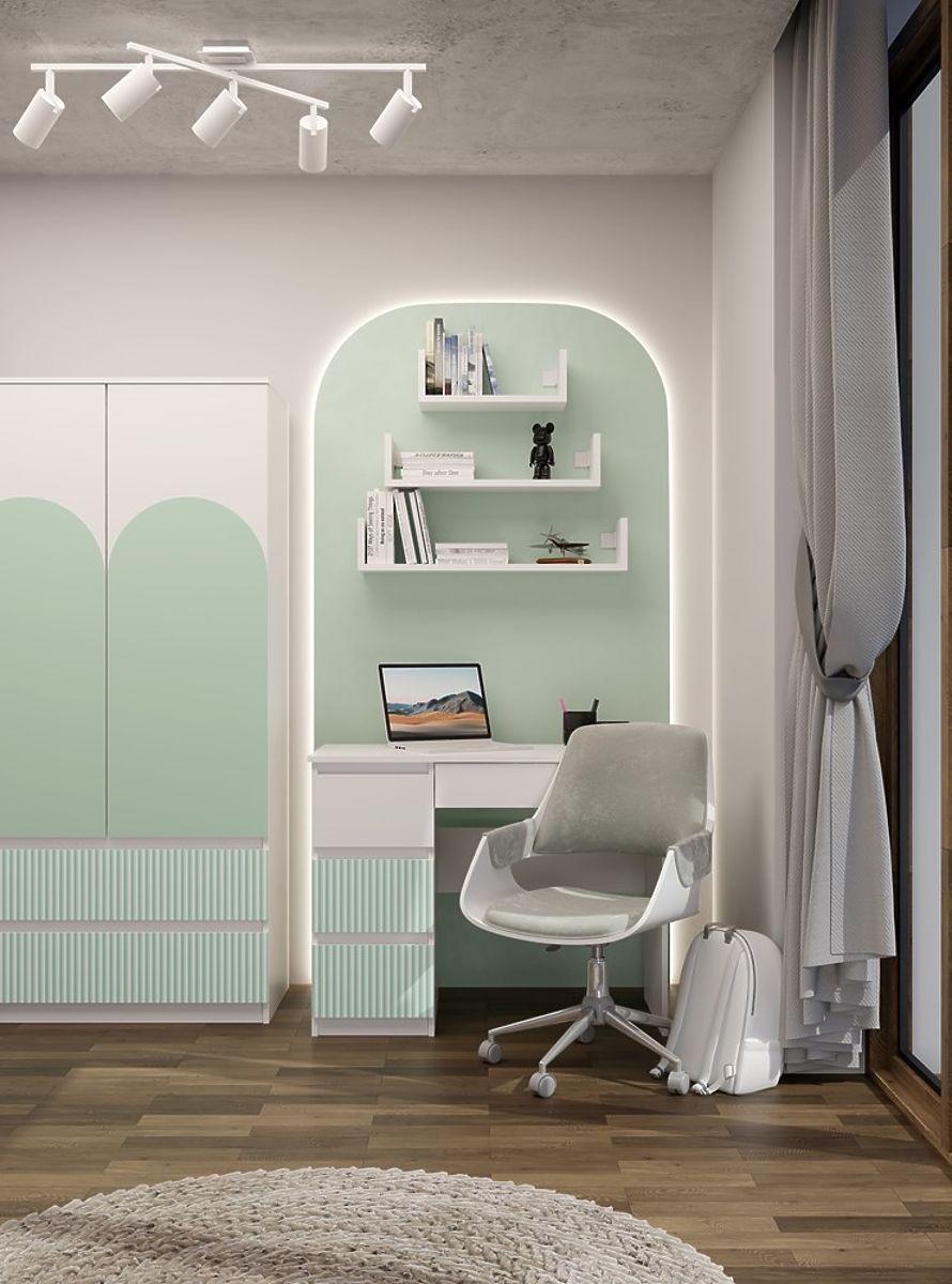 • 3 spacious high drawers on the left side (including 2 drawers with mint-colored patterns) and 1 low drawer on the right side under the top