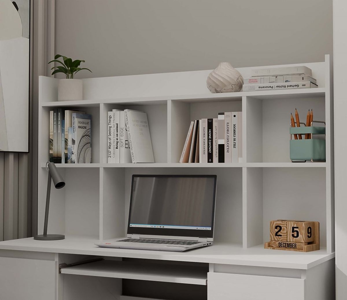• Matching top unit with 5 shelves – allows for storing books, decorations, and organizing workspace