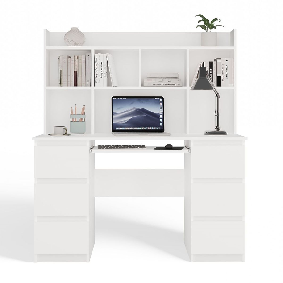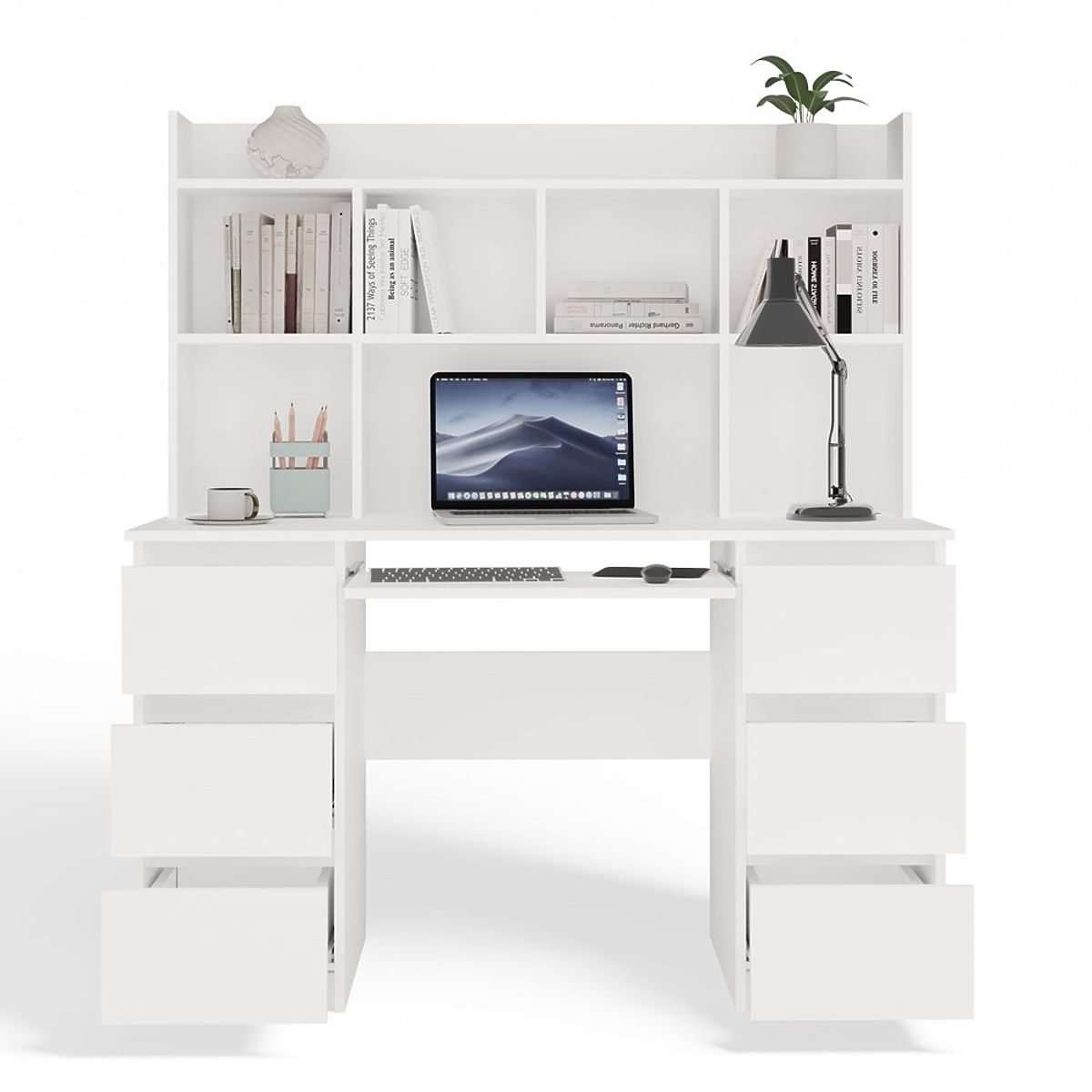 Functional desk set with drawers and shelves for organized workspaces. .. more