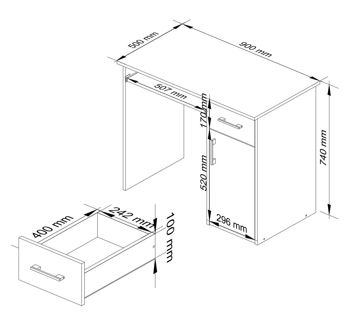 90 cm long desk with a pull-out keyboard shelf. .. more