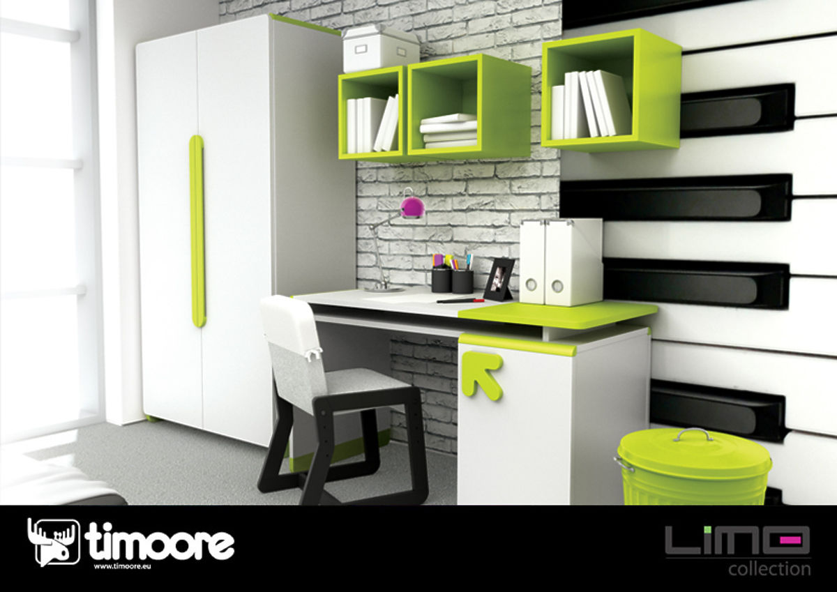 Looking for furniture that is imaginative, stylish, modern and practical? Limo imaginative furniture is suitable not only for children's rooms, but also in offices, living rooms, student rooms. It is a versatile and colorful furniture that is designed according to current trends that are emerging in the world of design. It is a great choice for all children through age appropriate for young children and students. Limo furniture collection are colorful, made of solid beech wood. The combination of three color variants looks very nice, beautifully vibrant orange, spring fresh green and beautiful decor beech. All sorts of shapes, colors bring out the diversity of individual pieces of furniture. The desk also includes container. Made from laminate in combination with lacquered solid beech. The handles at the desk are made of solid beech wood varnished. Possibility of colors on the right side (+ 30% of the price). Implementation period furniture is 7 weeks.