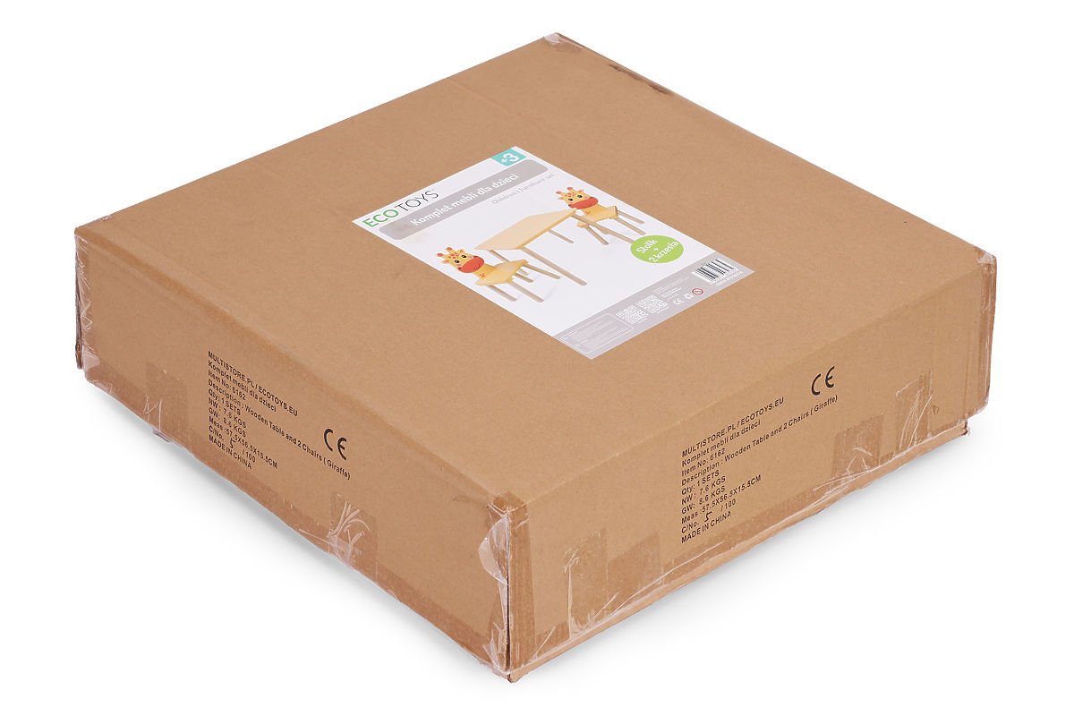 Capture your child's attention and create a unique play corner with the ECOTOYS children's furniture set. It's an excellent choice for parents looking for functional, safe, and aesthetic children's room furnishings. The set includes a table and two chairs with an adorable giraffe motif, which not only enchant with their appearance but also support the child's independence development. Give your child a comfortable space for play, learning, and relaxation – this set is perfect for both home and playrooms.