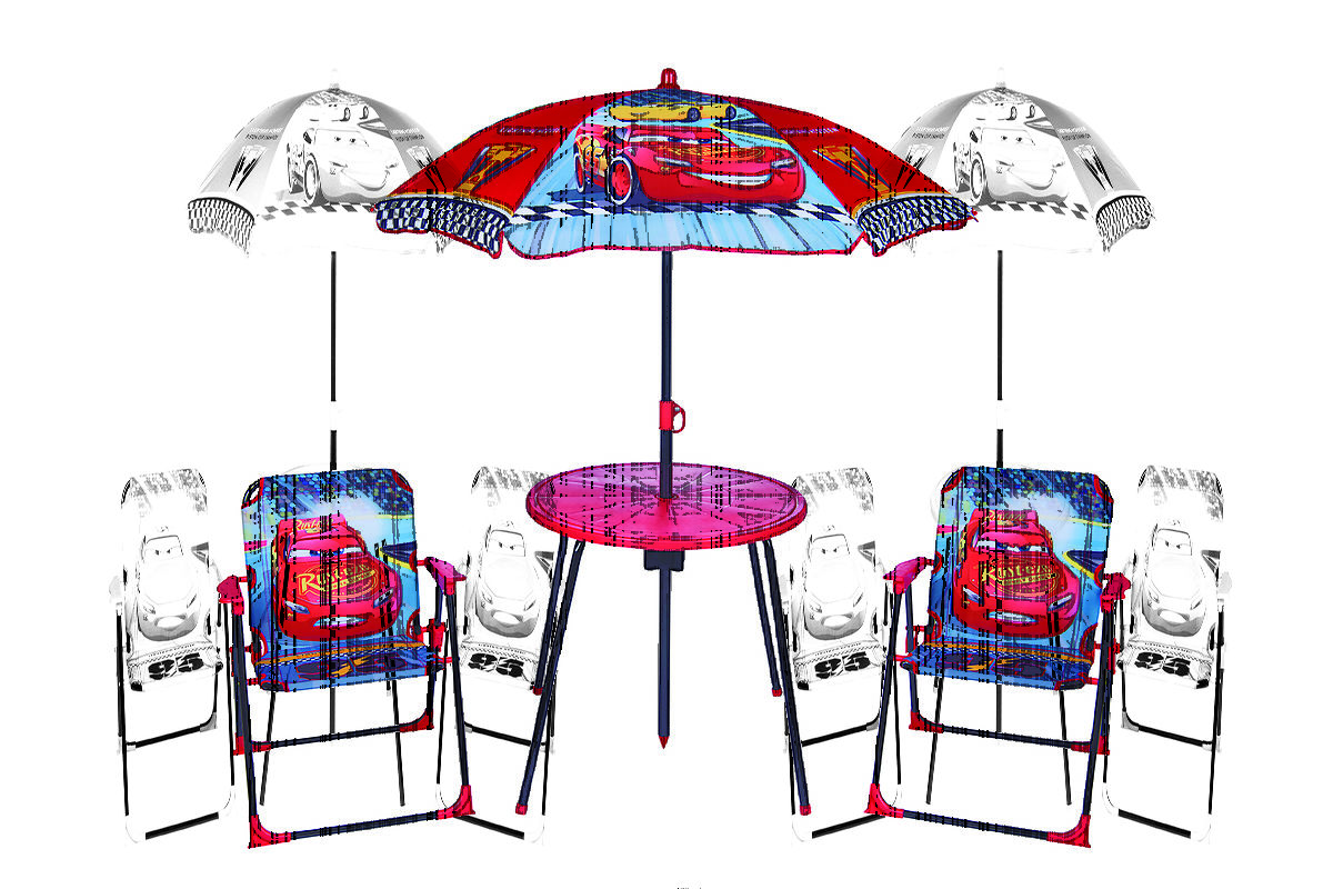 A set of garden furniture for children is suitable for both indoor and outdoor use. Chairs and a table with an umbrella on motives of Cars cartoon will be highlight of your garden, terrace or you can take it on holiday.