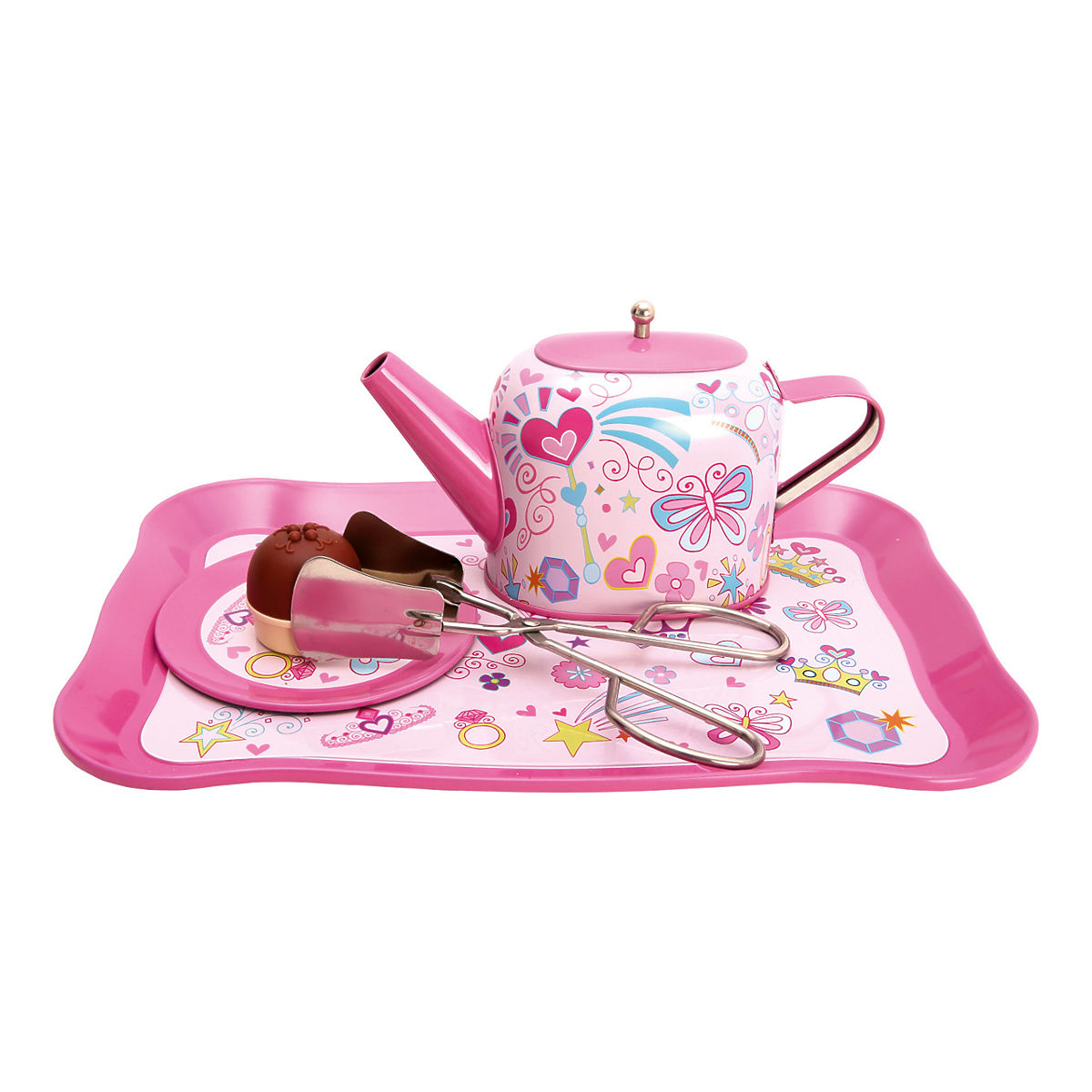 Time for a magical tea party for parents, dolls, and plush friends! With a rich tea service, children can develop their imagination and their social and communication skills. The set is intricately decorated, made from durable lightweight metal and non-toxic plastic. Main features: service for 4 people, 35 pieces in total, durable design