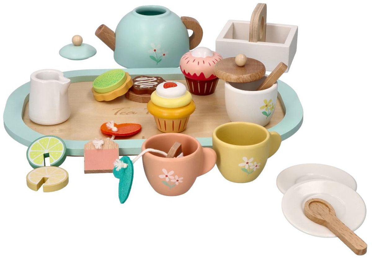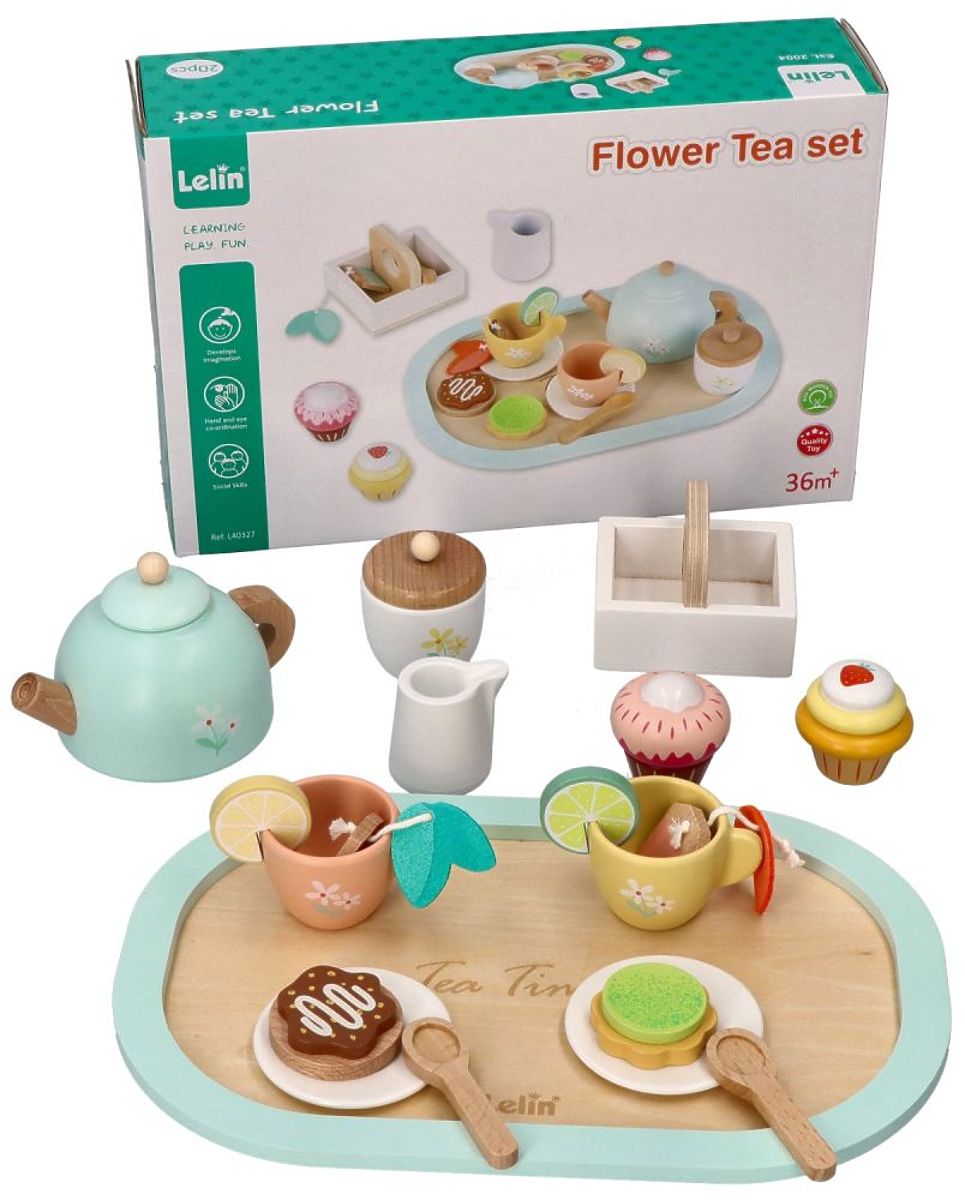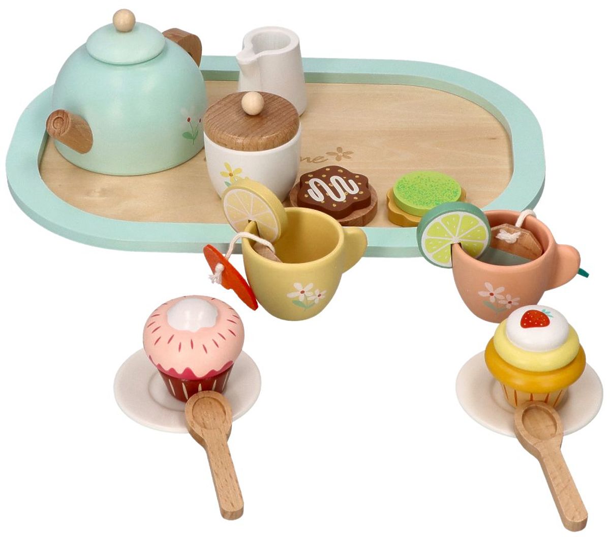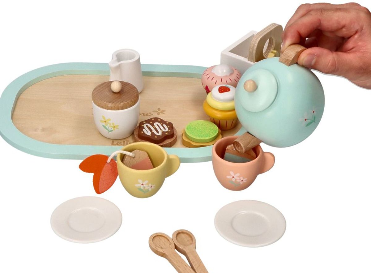 Immerse yourself in the world of tea parties with this beautiful wooden set adorned with delicate flowers. The pastel colors and gentle floral patterns transport every child into a magical world of imagination, where play becomes the true art of hospitality. Everything is made from natural wood and is safe for little hands. The floral motifs add charm, making the set suitable not only for play but also as a decoration for a child's room.