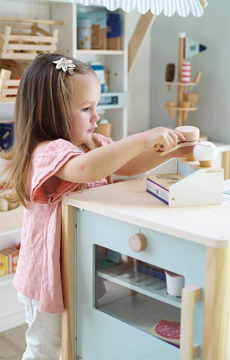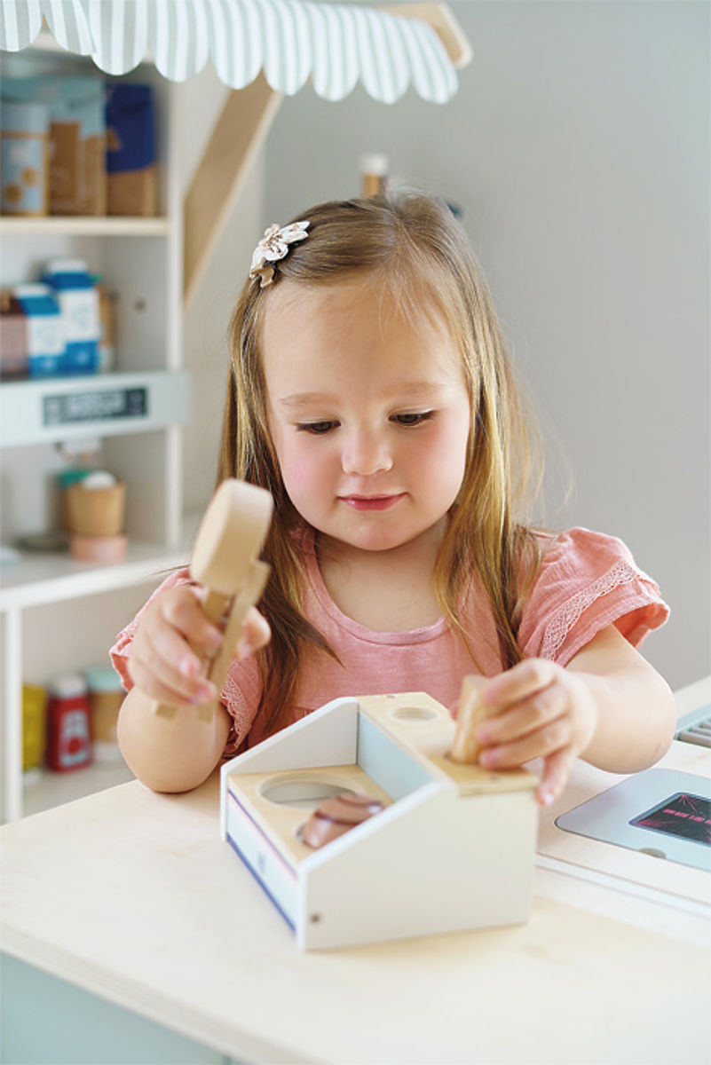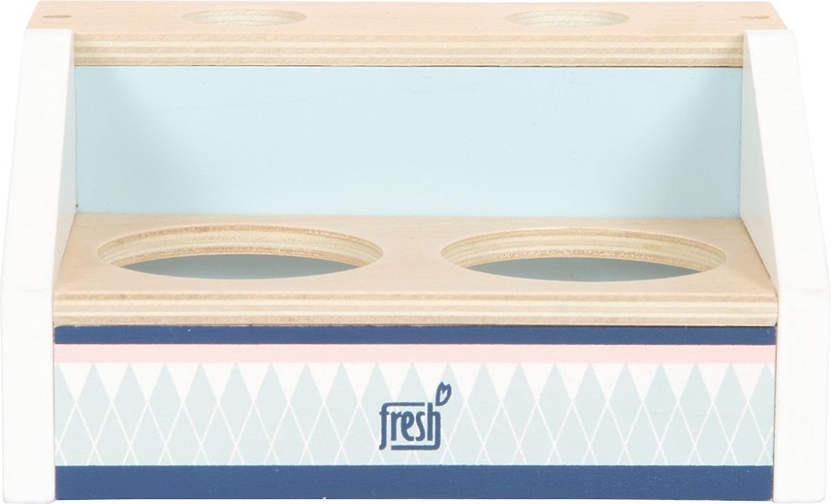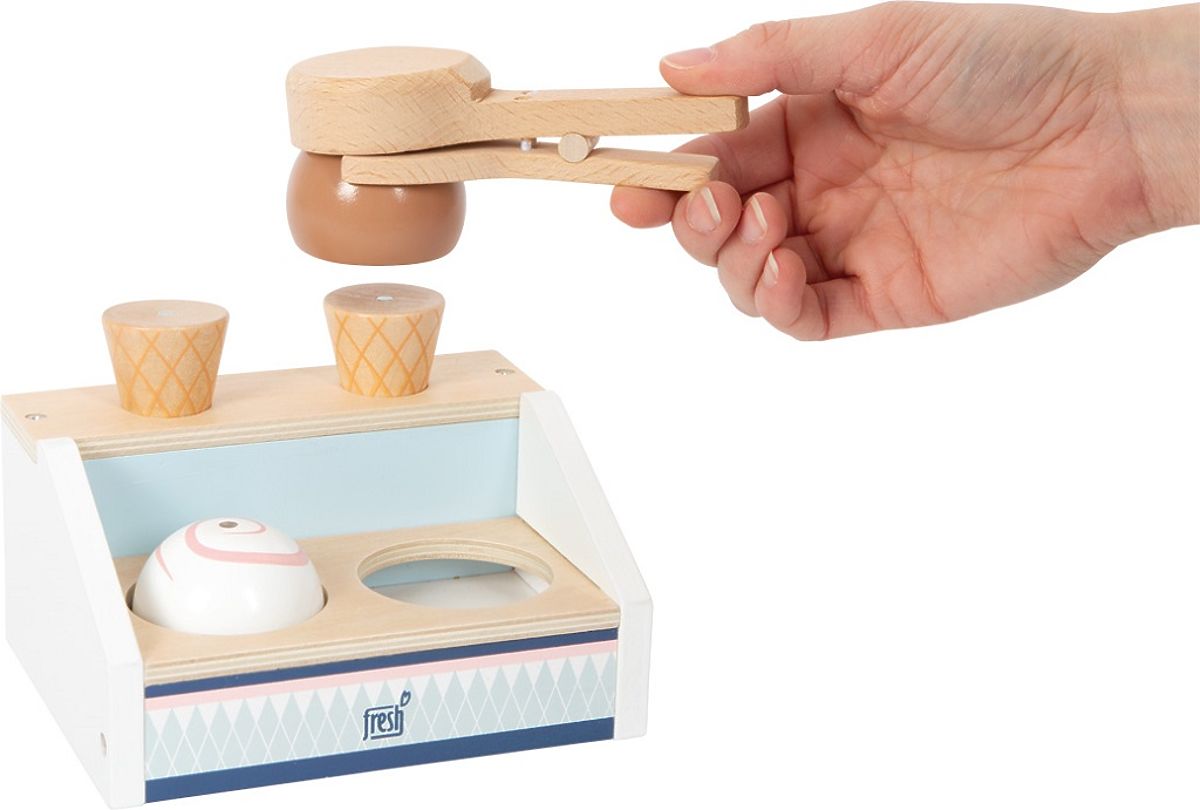 Today we have ice cream! This display with two compartments, thanks to its minimalist design and natural material, fits wonderfully into the small kitchens of every child's room! It includes a scoop, cones, and stackable ice cream scoops (these scoops can also be stacked thanks to their magnets). The highlight of the play set is the magnetic ice cream scoop - with just the press of a button, you can place the ice cream on the cone! Main features: gender-neutral color scheme, suitable accessory for products LE11815, LE12417, or LE12232, scoop, cones, and stackable ice cream scoops have magnets, the game supports communication skills and creativity.