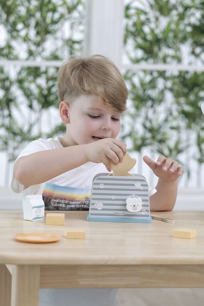 Delicious buttered toast for breakfast is something that gets everyone on their feet and provides energy for activities :) With this toaster set from the well-known toy manufacturer Viga, you can prepare and taste the delicacies found in the product, or treat your parents to some goodies. Now in the familiar PolarB theme with a friendly white bear as the rotary knob for turning it on.