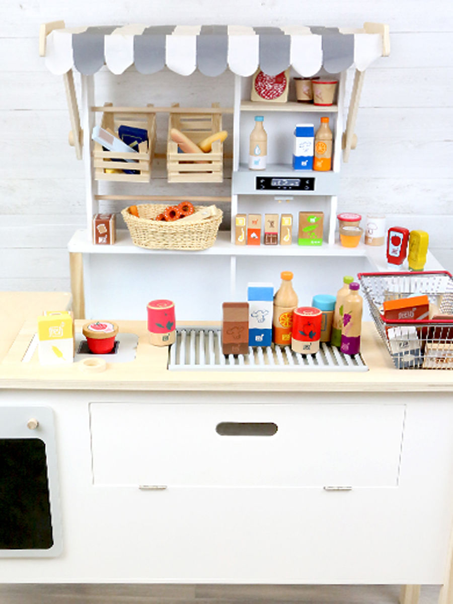 The perfect seasoning for a children's kitchen! The play set includes bottles made of high-quality wood in the typical colors of each product. Thanks to the distinct illustrations on the bottles, children can easily recognize their contents. The set includes vinegar, oil, ketchup, and mustard. Main features: the set contains 4 pieces, supports imagination and role-playing