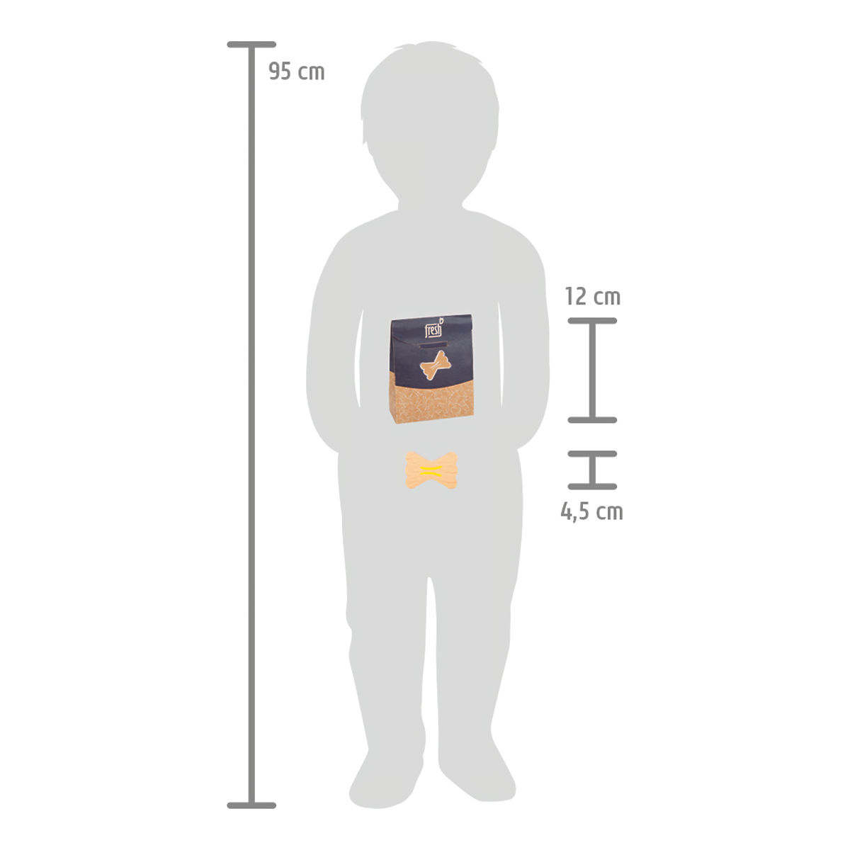 Children love pasta! Wooden farfalle will fit into any market stall or children's kitchen. There are 12 pieces in a sturdy natural cardboard package, made from solid wood. Practical and educational, the picture guide for preparation is on the back of the package, understandable even for the youngest children. How will your children use this imaginative toy? Will they cook lunch or sell pasta in the store? The toy offers long-lasting fun, especially when combined with other products from the "Fresh" range. Main features: twelve robust farfalle pasta pieces, perfect addition to children's market stalls and kitchens, packed in untreated cardboard, the box can be easily opened and closed again, compatible with other products from the "Fresh" range.
