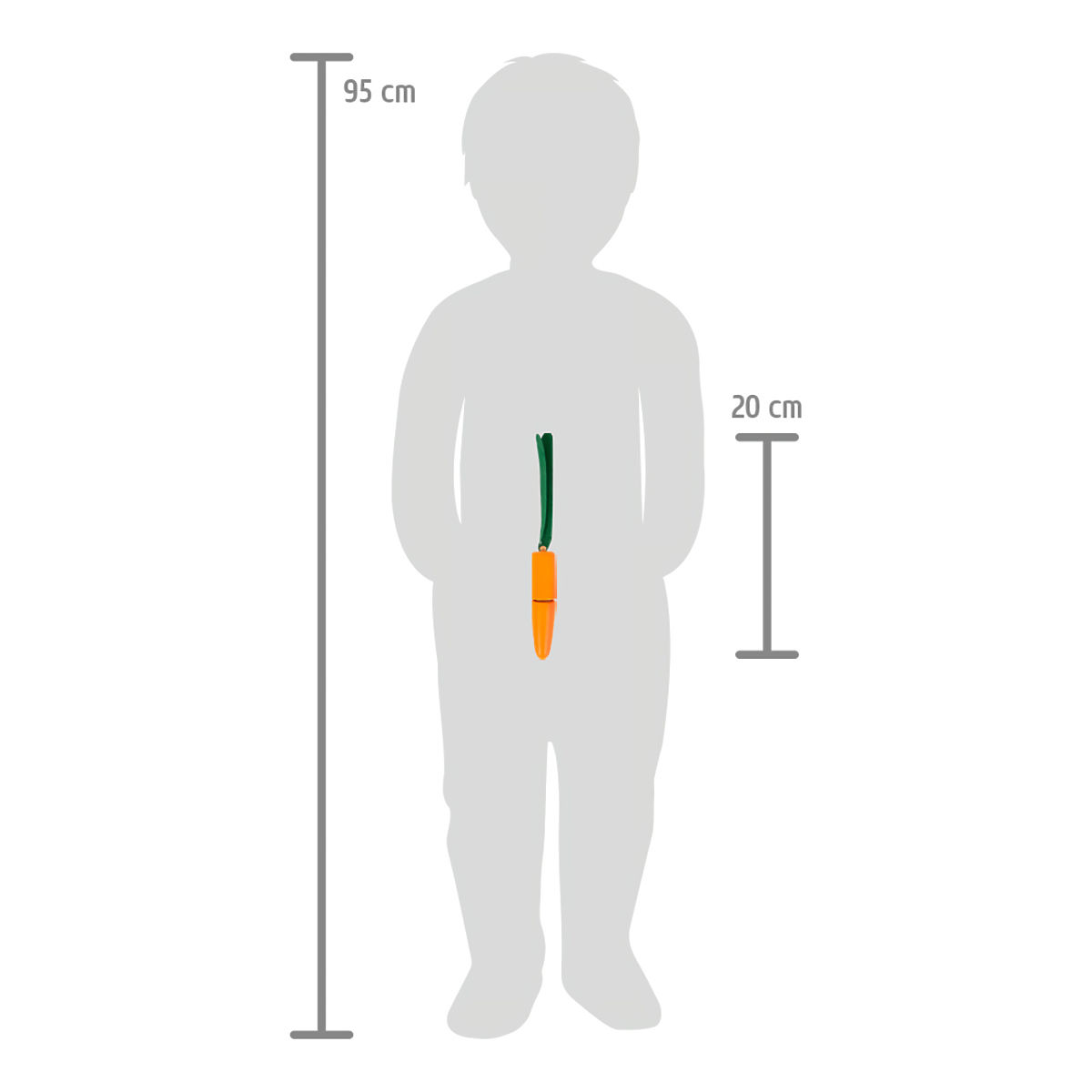 With this robust wooden vegetable cutting set, children can play as chefs! It consists of common vegetables that children will easily recognize. The package includes a cutting board, a wooden knife, and a reusable bag that can be used to store the toy. One side of the board can be written on with chalk, so you can jot down a shopping list or recipe. It's really important to learn the correct cutting technique, and with this toy, it will be a breeze. Bell pepper, mushroom, tomato, cucumber, and carrot – it's all in this set! The naturally looking and detailed vegetables are held together with Velcro. Thanks to the sustainable packaging, children will learn something new about ecology. The cutting board can be hung up thanks to its loop. Main features: robust wooden vegetable cutting set, natural appearance with printed details, comprehensive set with board, knife, bell pepper, mushroom, tomato, cucumber, and carrot, packed in a reusable bag, children learn something new about ecology while playing, one side of the board can be written on with chalk.