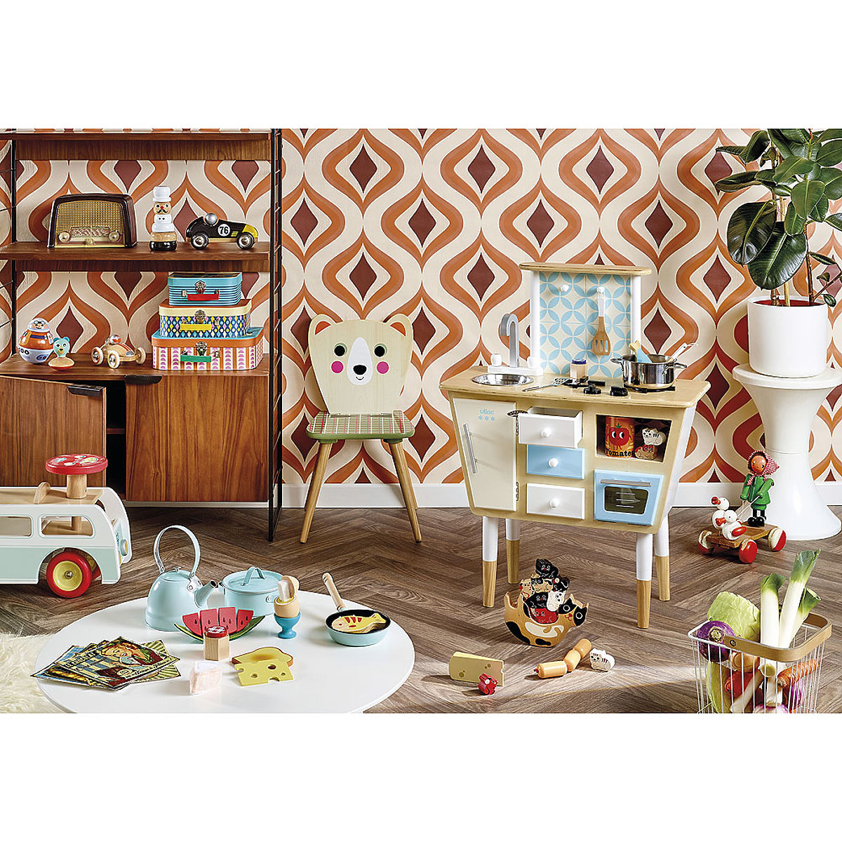This original breakfast set includes a sliced egg for dipping a piece of bread, 1 slice of toast, cheese, a croissant, 2 jams, 1 cup of tea with a tea bag, and sliced watermelon. Yum, a very good breakfast! The toys are made of wood and felt. The set consists of 12 pieces. Main features: suitable for any kitchen, food made of wood, contains 12 pieces