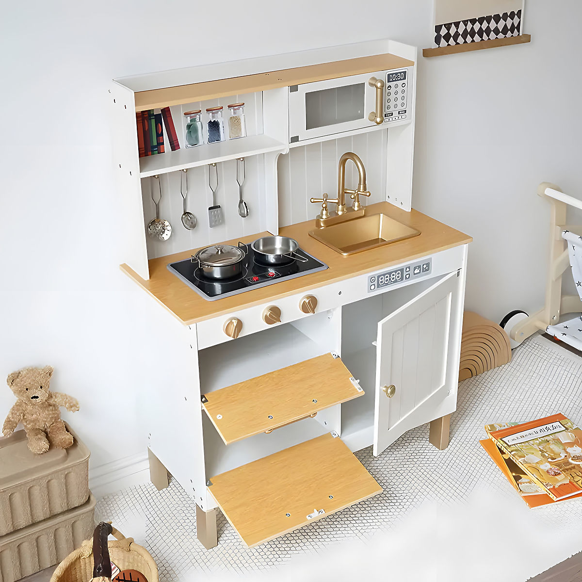 Banaby.ie » Toys / Children's kitchens / Wooden kitchenettes / Children's Kitchen with Sounds and LED Wooden Large Opening Cabinets 7 Accessories ECOTOYS
