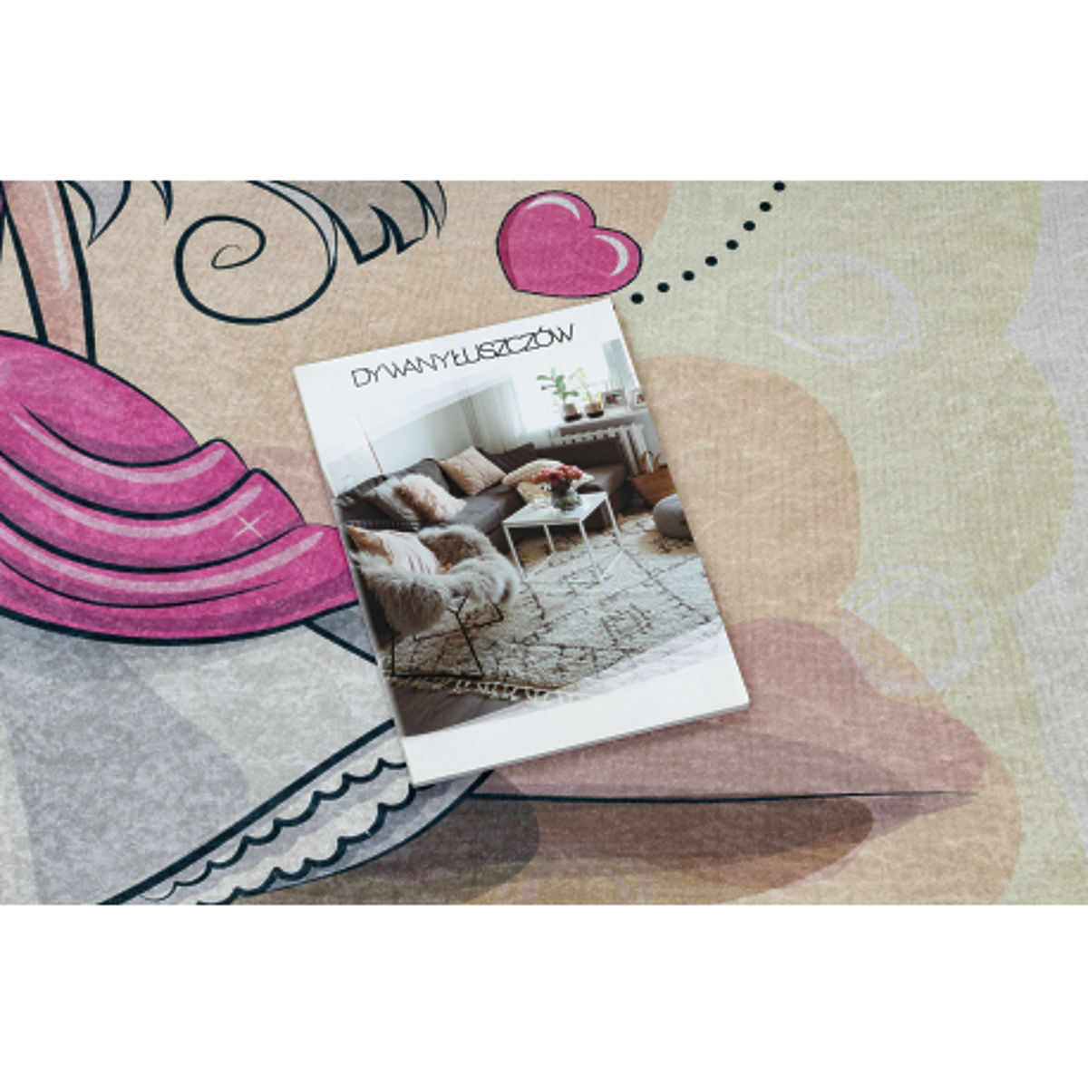 Transform your child's room into a royal kingdom with the BAMBINO 43020 washing rug, which enchants with its princess and delicate star motif. The combination of cream and pink colors appears gentle, elegant, and beautifully complements any girl's room. The rug creates a fairy-tale atmosphere where your child will feel like a real princess – perfect for playing, creating, and relaxing. The rug is made of 100% polyester, ensuring a pleasantly soft surface, high durability, and easy maintenance. With a thickness of 5 mm, it is comfortable to touch and pleasant to sit on. The low weight of 0.70 kg/m² allows for easy carrying and handling. A significant advantage is the machine-washable feature, which makes it easy to maintain cleanliness. The anti-slip bottom layer ensures safety while walking and playing on smooth floors.