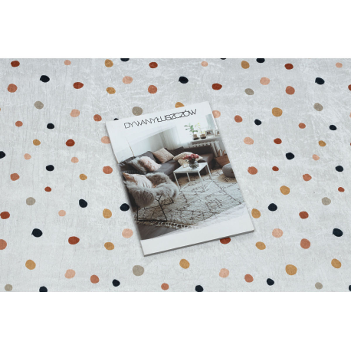 Soft, anti-slip mat with a white and brown dot pattern for kids. .. more